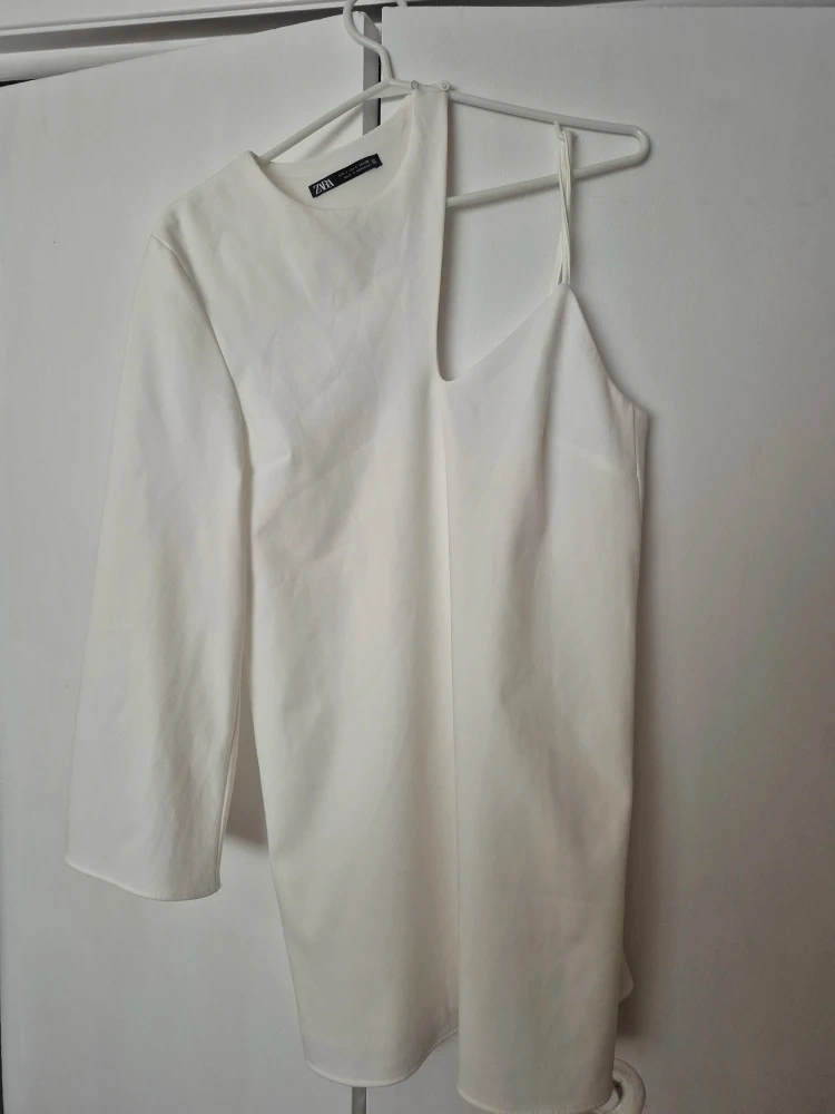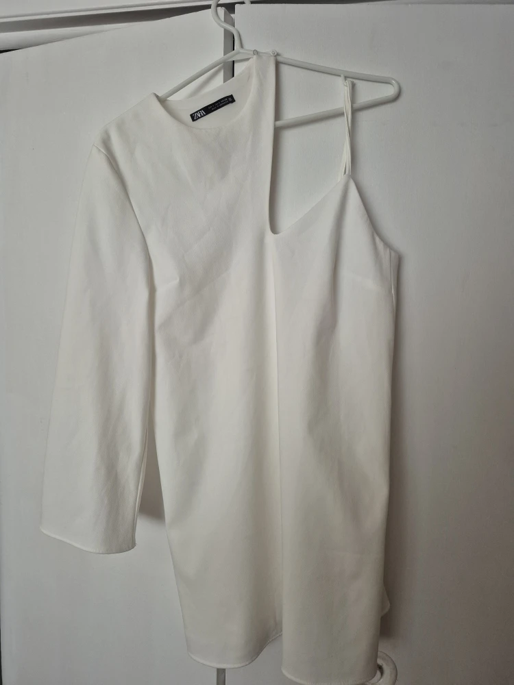 A stylish Zara dress in size small. It's a unique one-shoulder design in a crisp white colour. Perfect for a night out or a special occasion!
