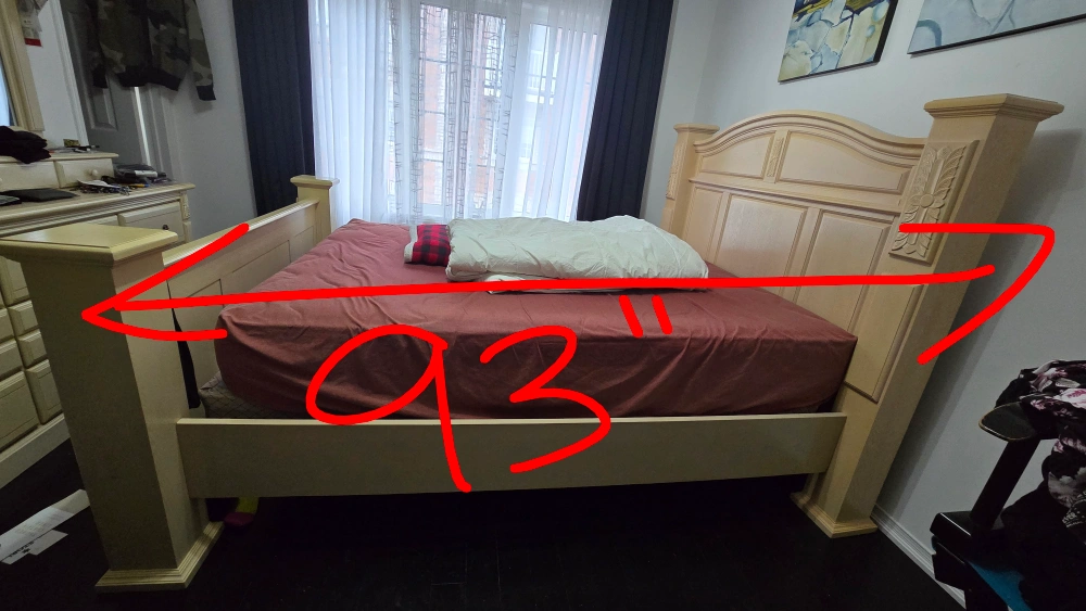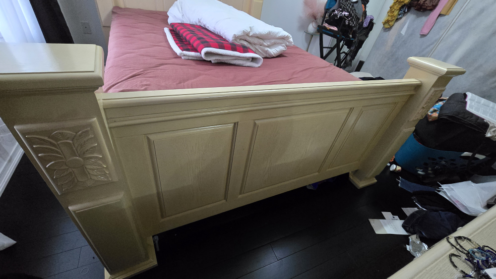 wood queen size bed frame. its big, uts bulky, so you better have space for it. great for a fix up project. in good condition.