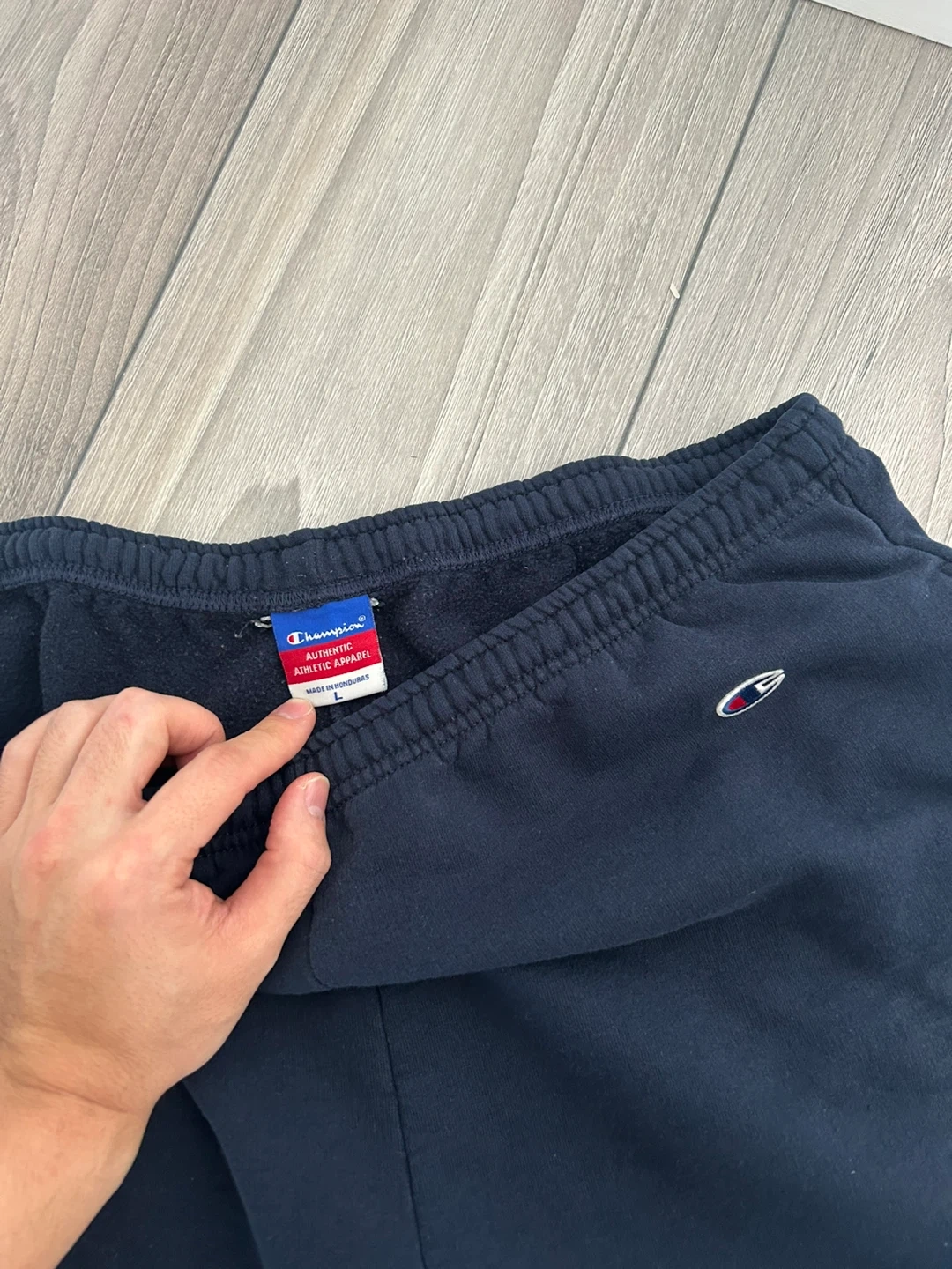 Selling a pair of Champion sweatpants in navy blue. They're a size large and in good condition. Perfect for lounging or hitting the gym!