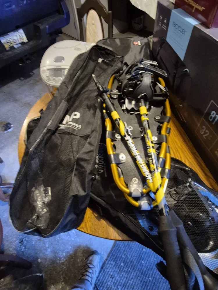 Selling a pair of Mountain Air snowshoes that are in good condition. They come with a carrying bag for easy transport and storage. Perfect for hitting the trails this winter!