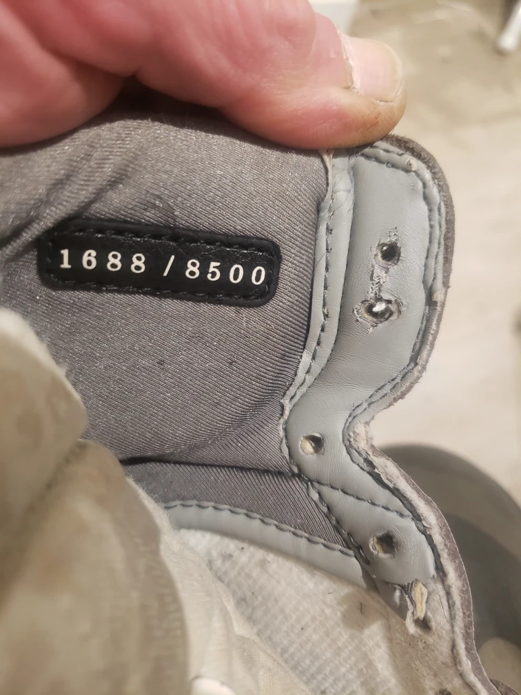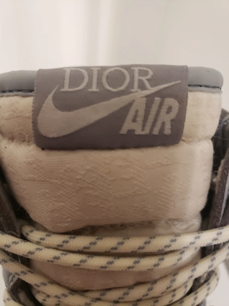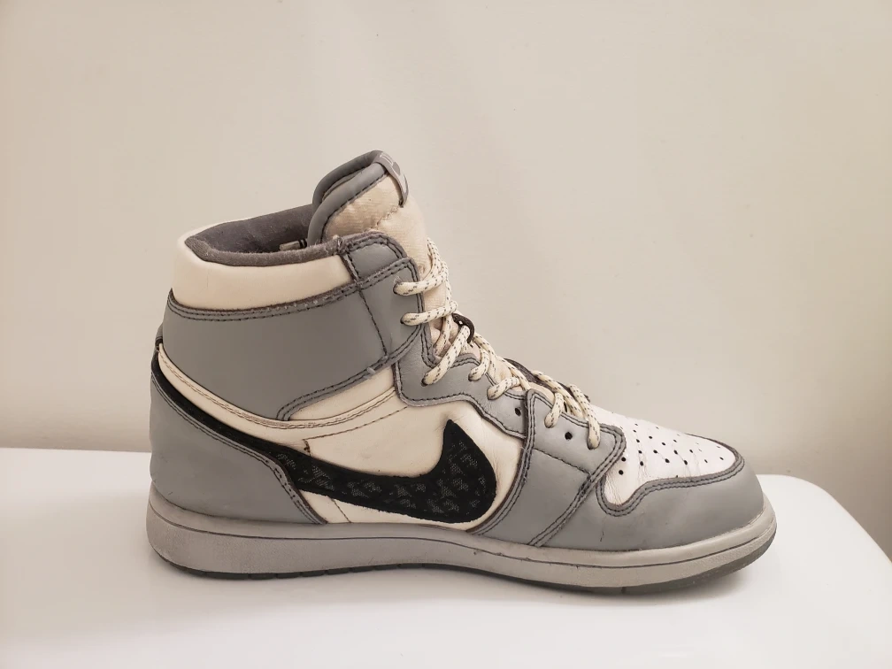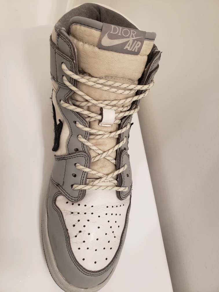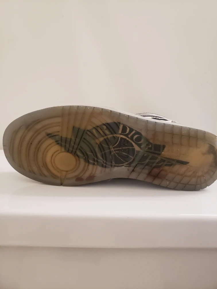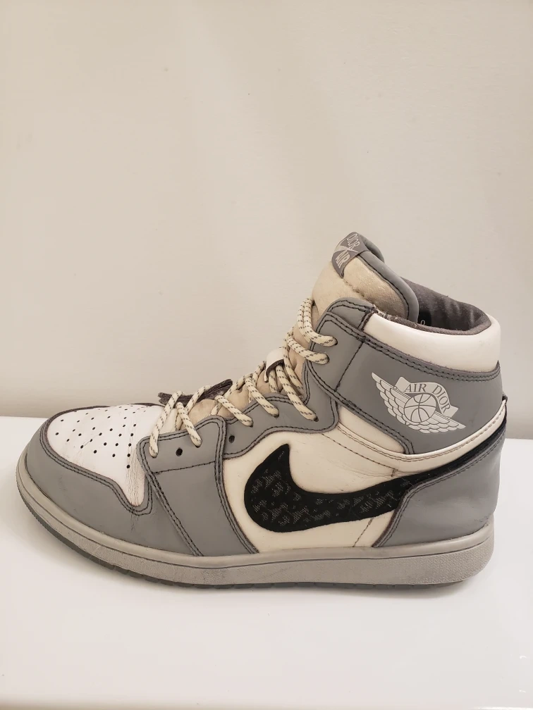 Selling a pair of Dior Air Jordan 1 High in grey and white. They are in good condition and ready for a new owner! Please message me if you're interested