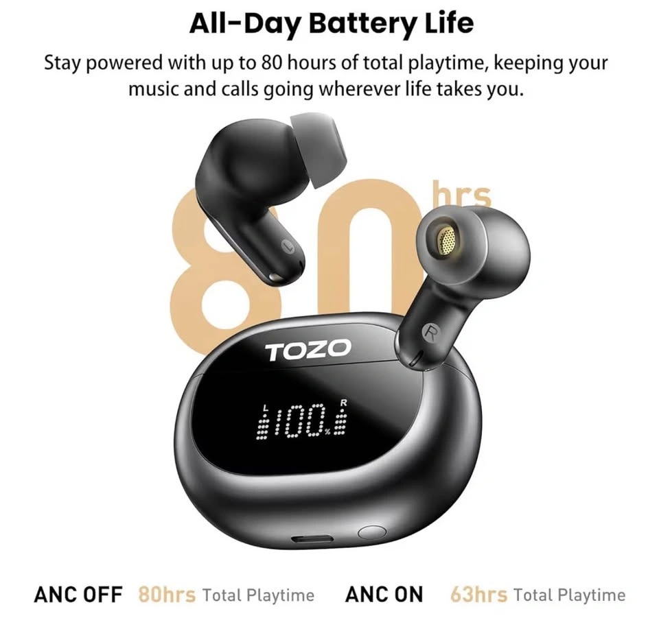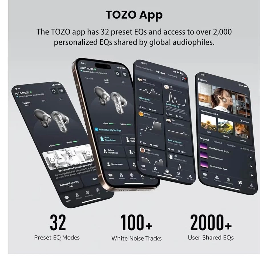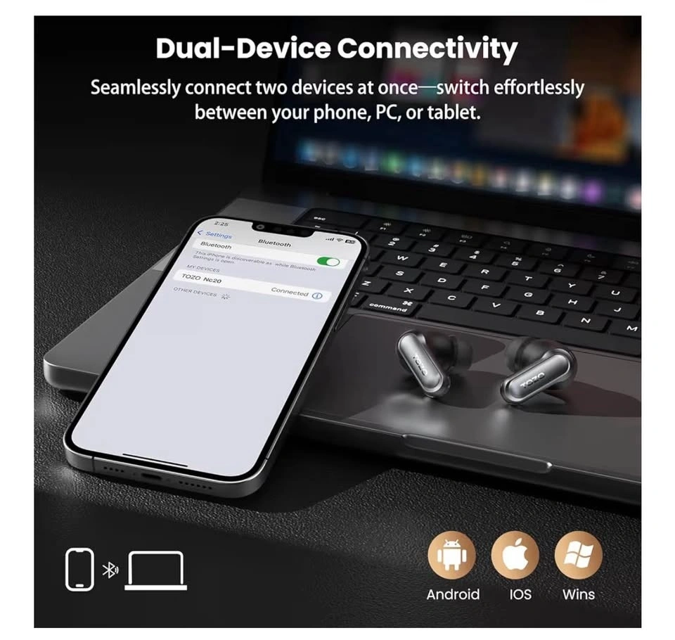 NC20 Active Noise Cancelling Wireless Earbuds, LDAC Hi-Res Sound Bluetooth Headphones, 6 Mics AI Call Ear Buds 80H Playtime, Dual Pairing, 32 EQ via App, IPX8 Waterproof, Wireless Charging case