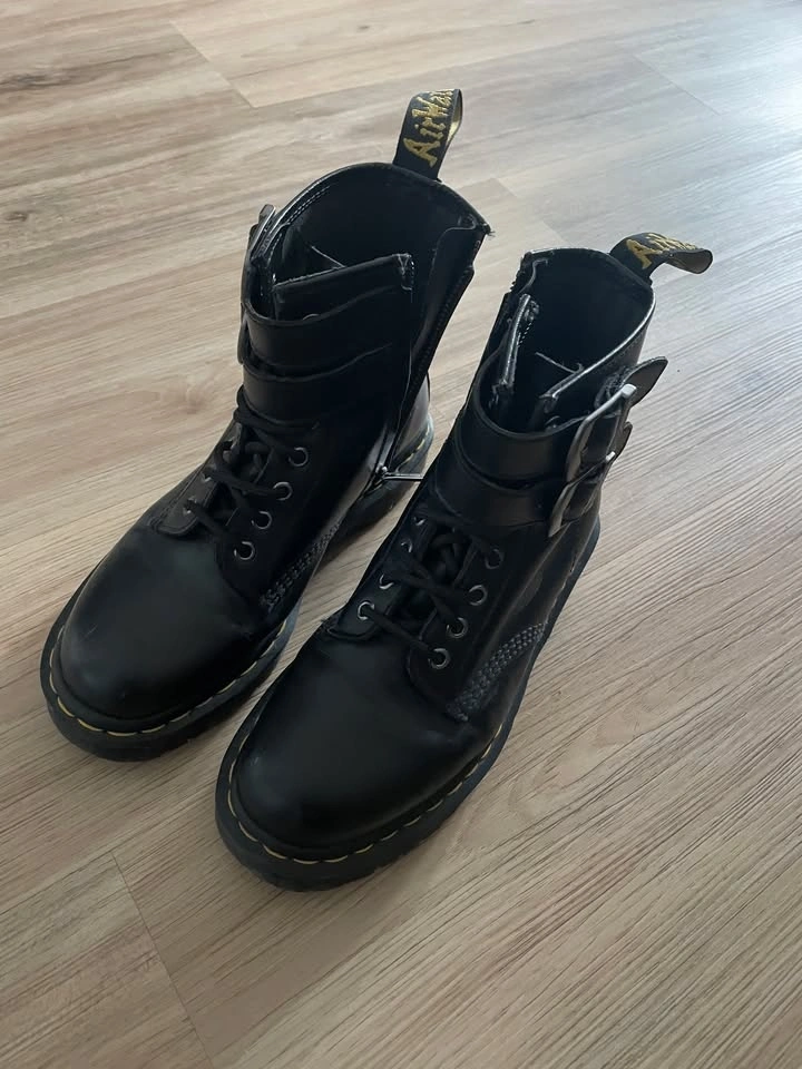 Photos 1-3: Dr. Martens Women's 1460 Smooth Leather Buckle Boots Size 8 - Retails $240 **Missing left insole - can be replaced) SELLING $80
