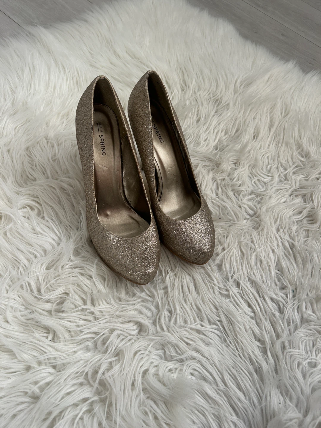 These Call It Spring heels are perfect for adding a touch of sparkle to any outfit! They're a beautiful gold glitter colour and in great condition. Size 8