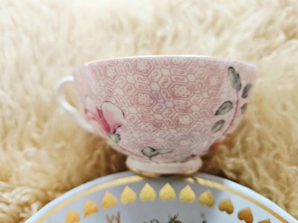 Elegant brand new in box Cuckoo floral teacup and saucer set from iconic English fine bone china company Wedgwood, from the Tea Story Collection. Blue gift box with gold foil designs opens to reveal a charming matching teacup and saucer with pink flowers, delicate patterns and a cute cuckoo bird, with gold accents. Perfect gift idea for the tea lover in your life!