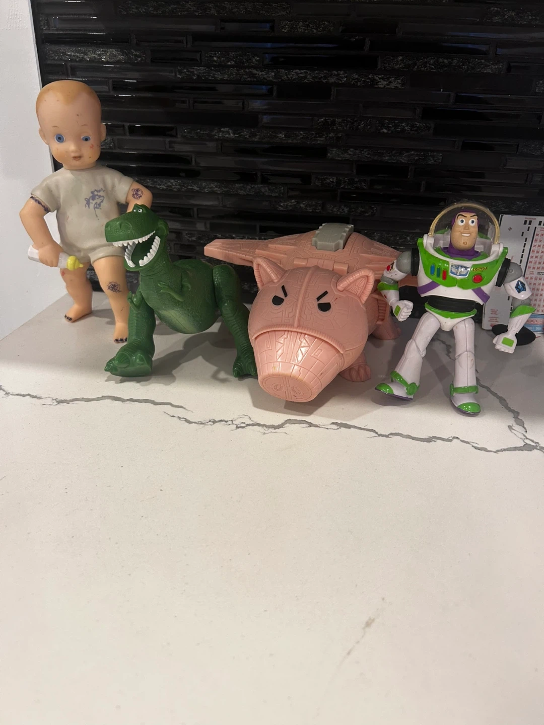 Selling a few Toy Story figures! There's Rex, Hamm, and Buzz Lightyear. They're in good condition and ready for a new home!