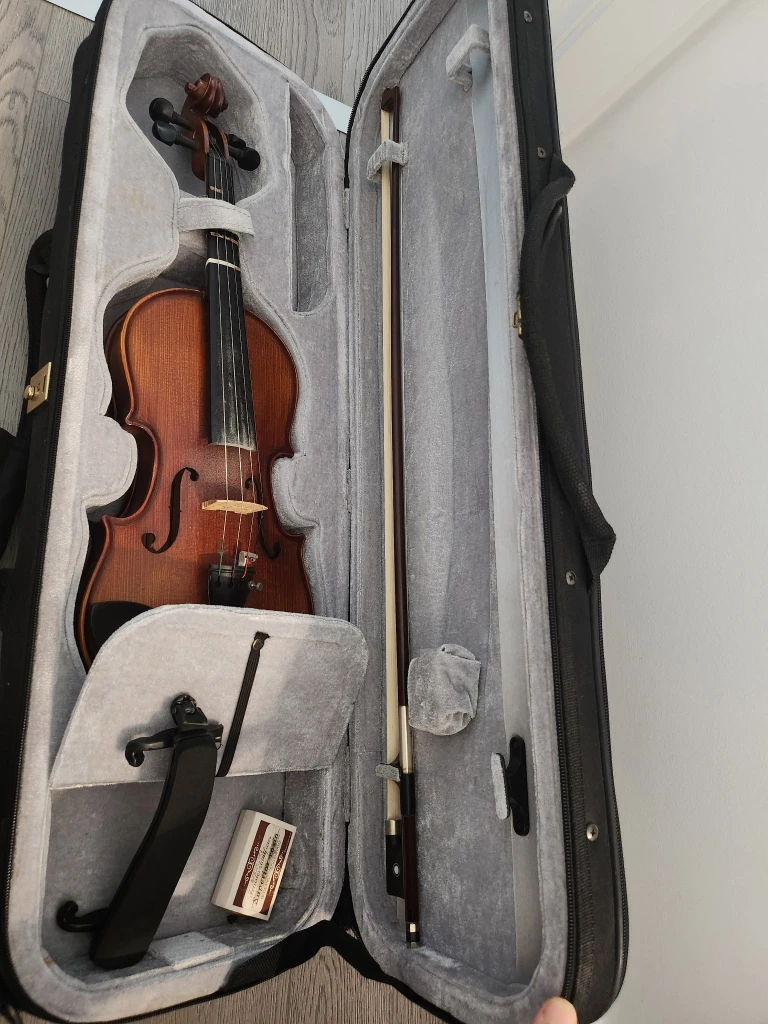 Selling a violin that comes with its case and bow. It's in good condition and ready to play! The 3/4 size makes it perfect for kids to start learning. Comes with everything you see in the pictures.