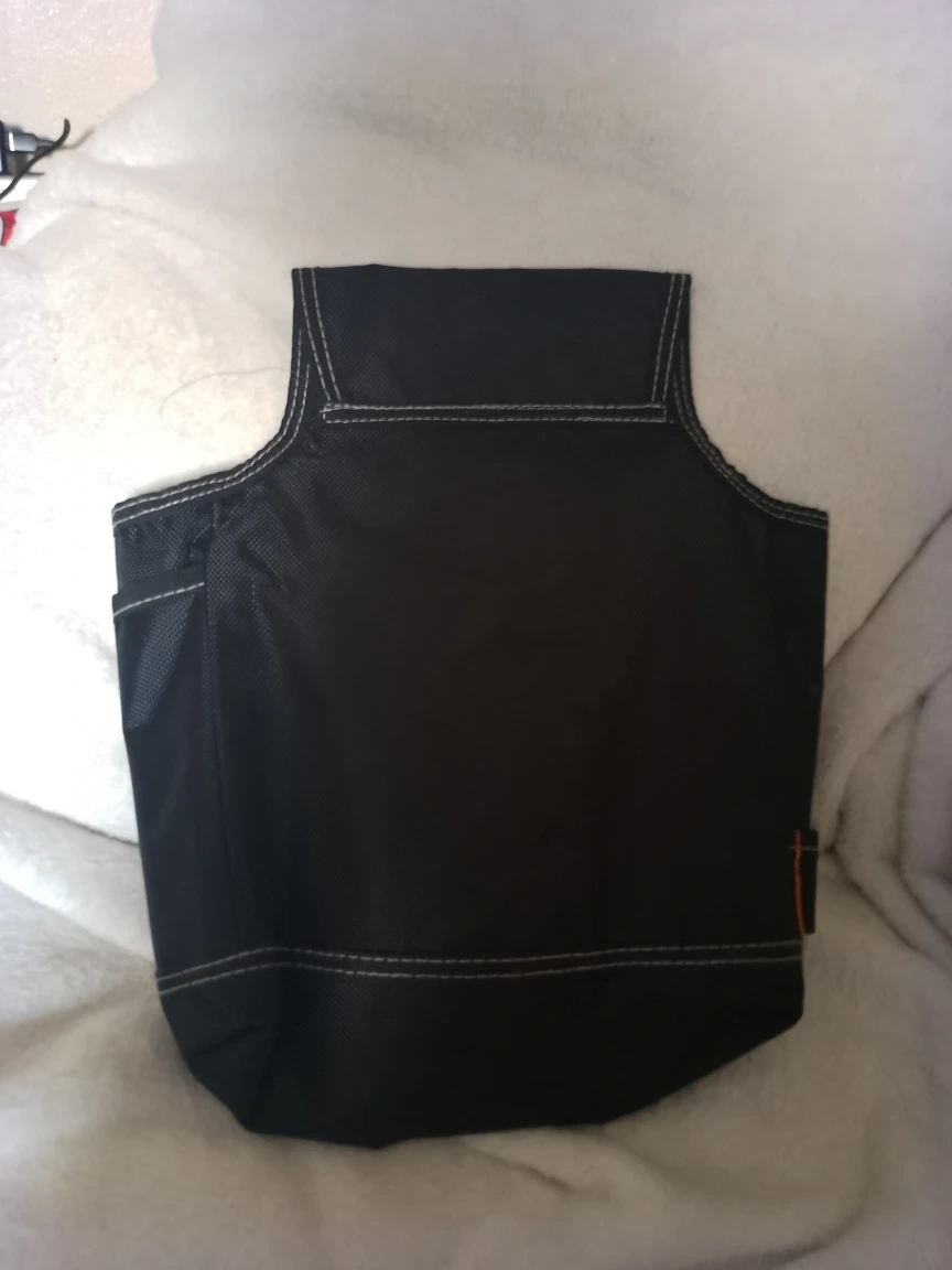 Here's a handy black tool bag! It looks like it's in great shape and ready to help with your projects. It features multiple pockets for organization, can be tied to the belt
