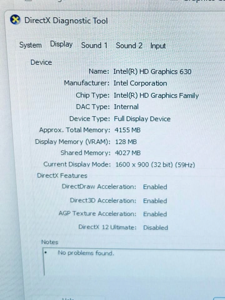 - Intel HD Graphics 630