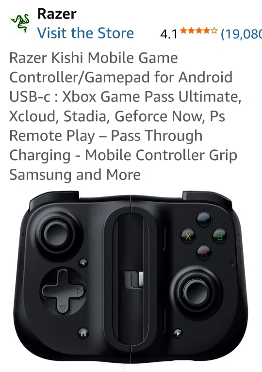 Selling a Razer Kishi Mobile Game Controller/Gamepad for Android! It connects via USB-C and is compatible with Xbox Game Pass Ultimate, Xcloud, Stadia, Geforce Now, Ps Remote Play, and more. It features pass-through charging and a comfortable mobile controller grip. Originally priced at $109.99!