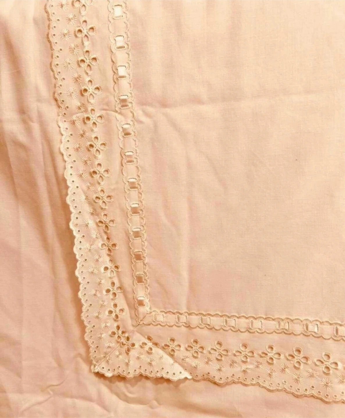 Brand new lovely peach-coloured duvet cover set with delicate Anglaise lace embroidery around the edges. It's brand new and would be perfect for adding a touch of charm to your TWIN or SINGLE SIZE BED