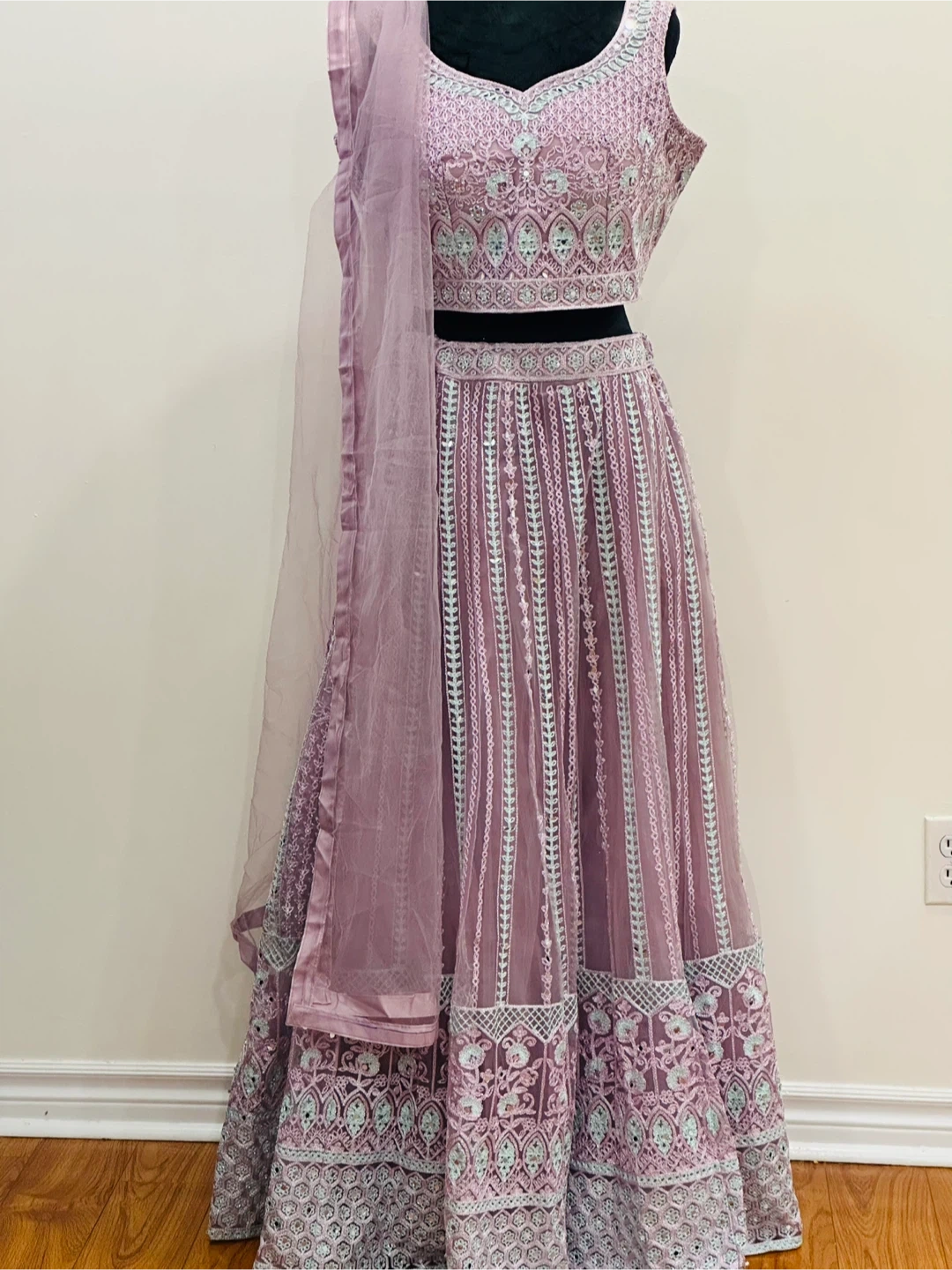Selling a beautiful purple lehenga choli set! This set features intricate embellishments and a lovely design. Perfect for special occasions or celebrations. It's in great condition and ready for a new owner!