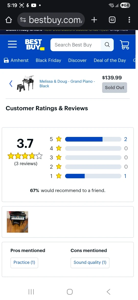Melissa & Doug Black Toy Piano - FAST PICK UP!