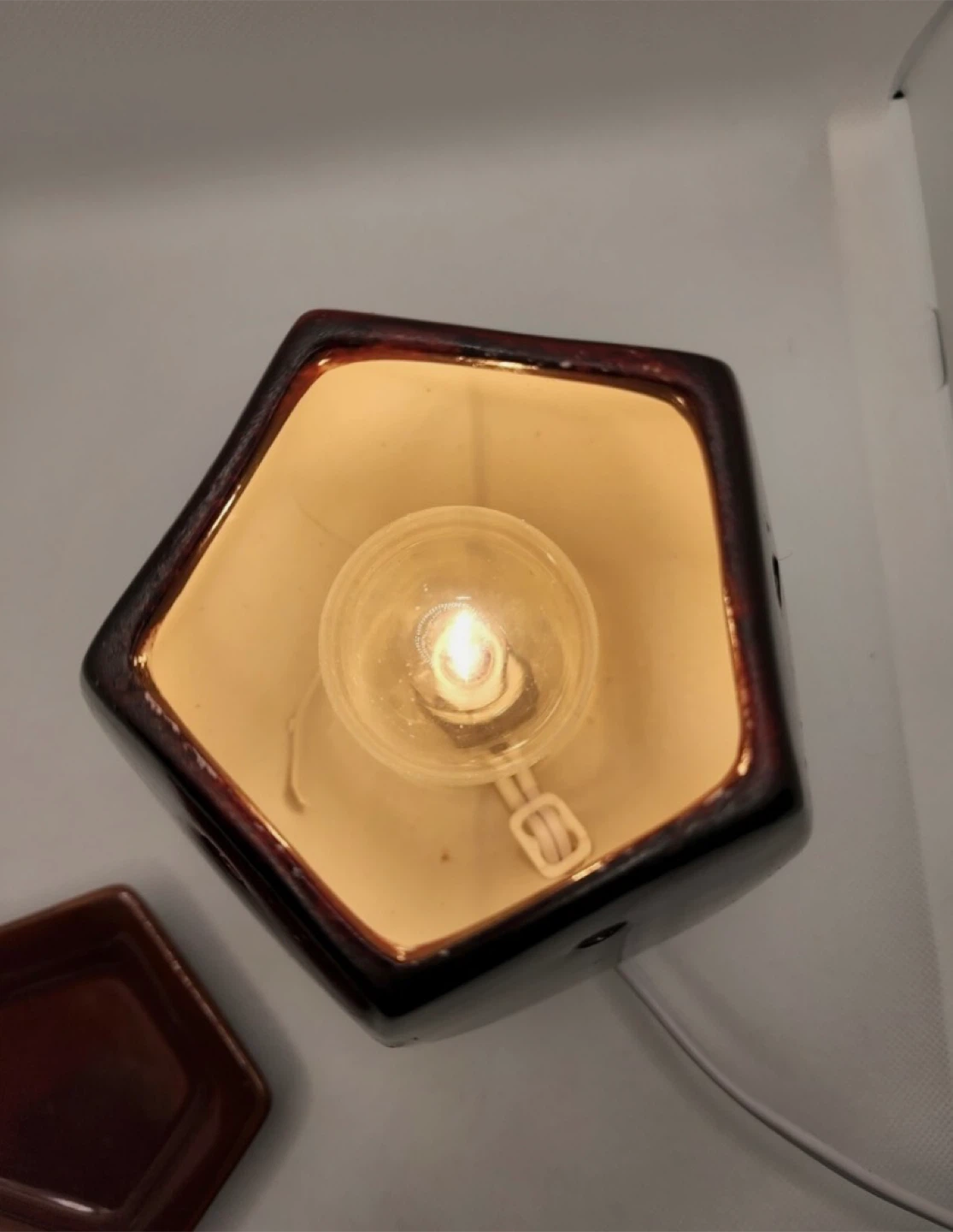 Here's an aroma oil warmer, perfect for creating a relaxing atmosphere. It's in great condition and ready to use. Just add your favourite essential oils and enjoy the soothing scent.