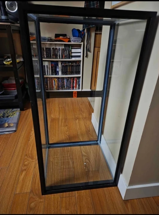 Selling a glass terrarium with a black frame. It's in good condition and ready for your plants or reptiles. I dont have a lid for it- didn't come with one . It is about 40gallon