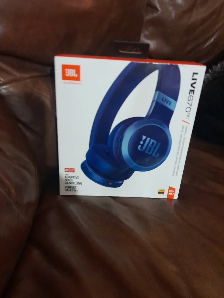 Selling a brand new pair of JBL Live 670NC headphones in blue! They feature adaptive noise cancelling and are perfect for calls. 65 hours of playtime, Bluetooth wireless, true adaptive noise canceling, audio,video modes, multi point connection brand new sealed box