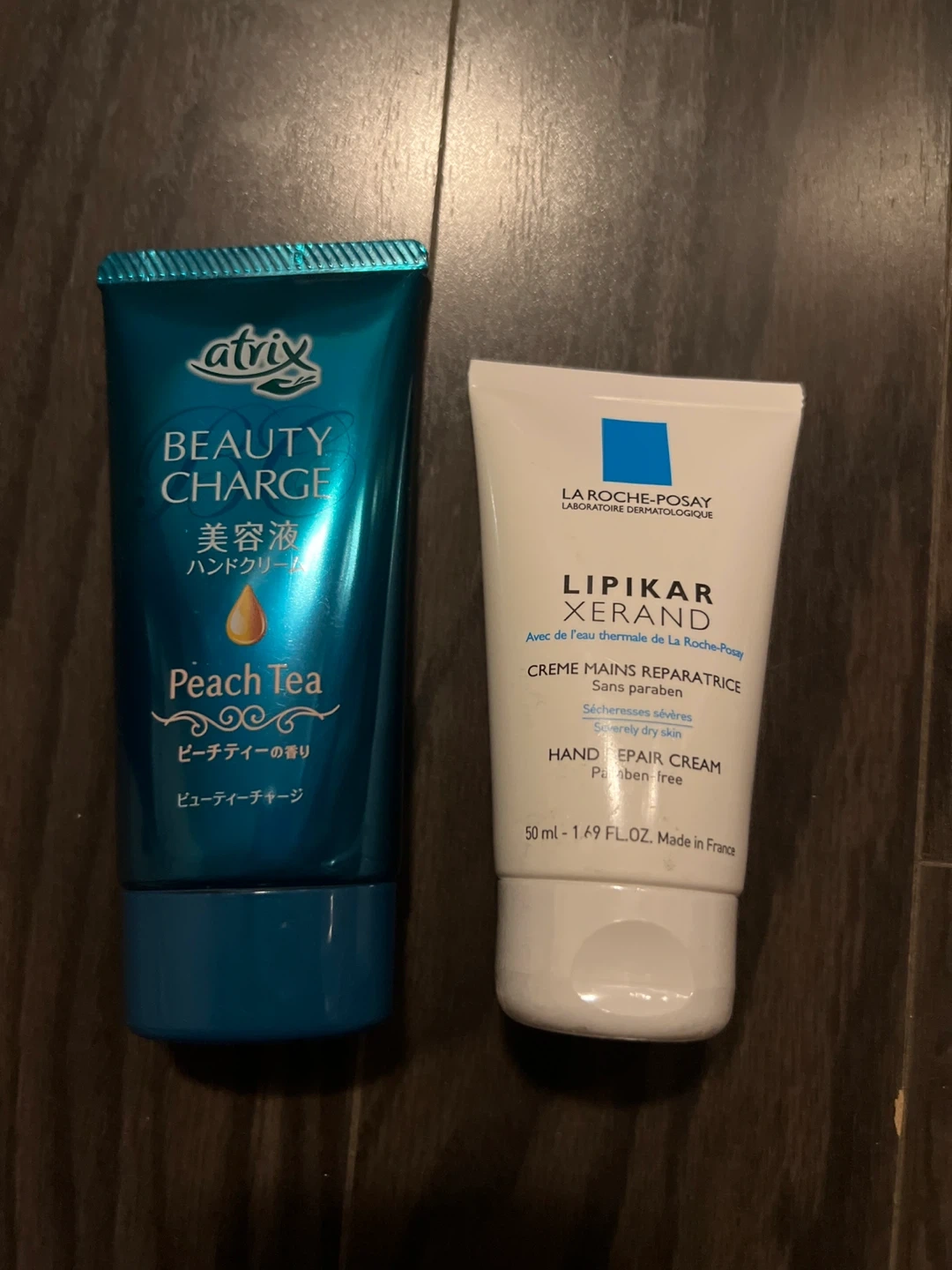 Selling two hand creams: Atrix Beauty Charge in Peach Tea scent and La Roche-Posay Lipikar Xerand Hand Repair Cream. Both are great for keeping your hands moisturized!