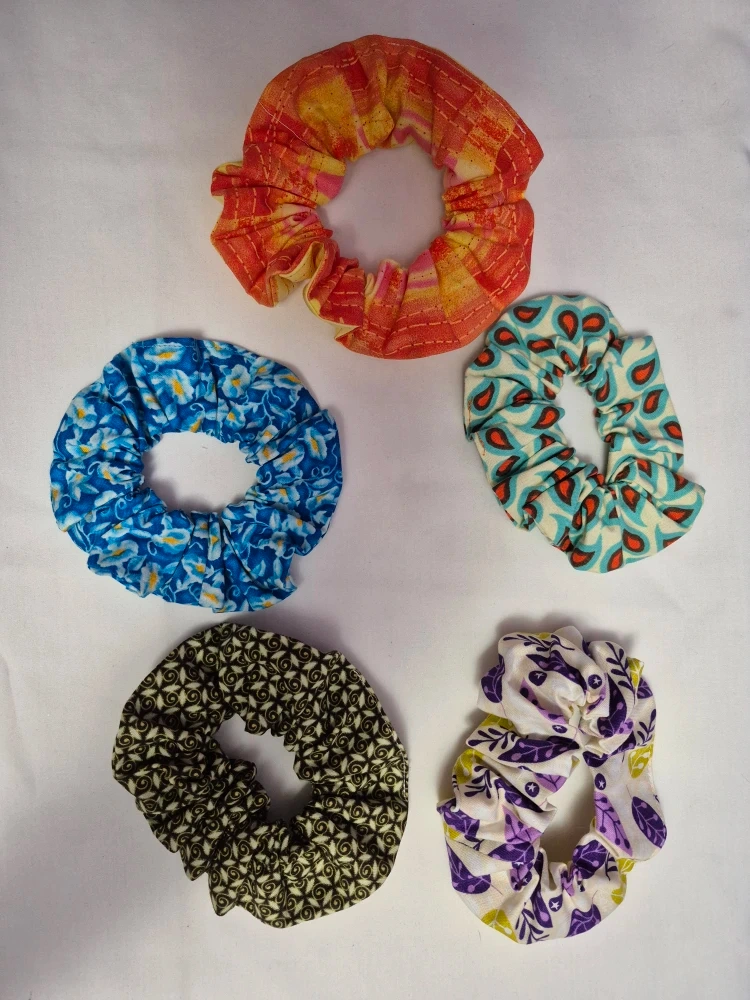 Scrunchies - Assorted Colours & Patterns, 100 % cotton