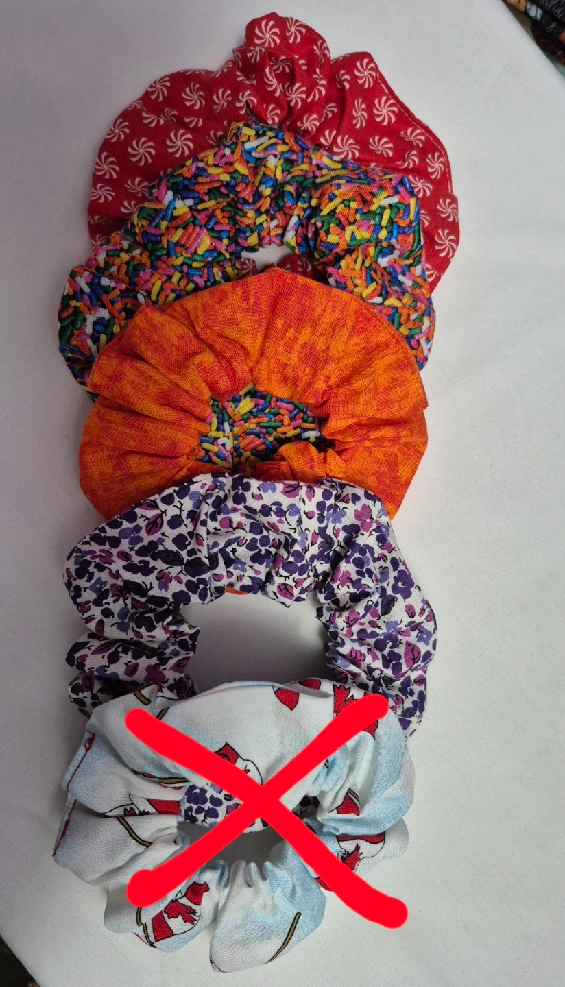 Selling a bunch of scrunchies in various colours and patterns! They're all in great condition and ready to add a pop of fun to your hair. Check out the pics to see all the different designs