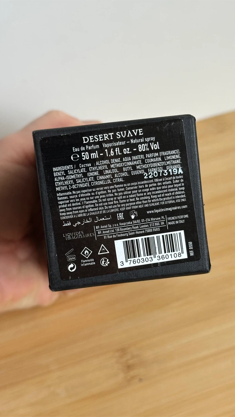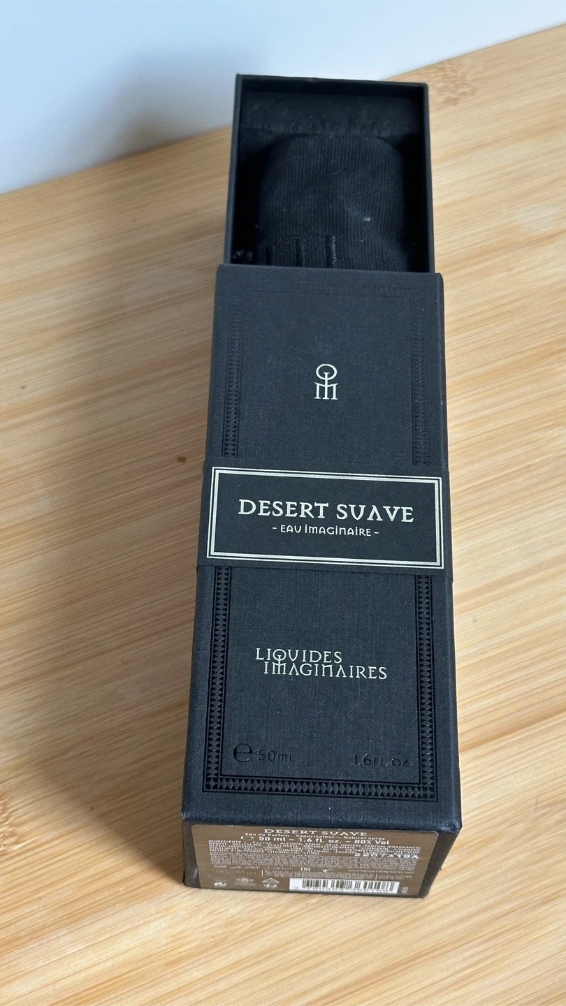 Selling a bottle of Liquides Imaginaires Desert Suave Eau de Parfum. The bottle contains 50ml - 1.6 fl oz. It comes with the original box (full presentation). Gently used a few times. See the fill line.