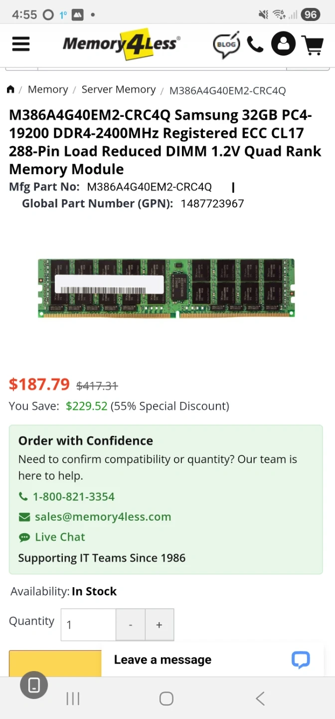 Selling a Samsung 32GB DDR4 2400 ECC Server RAM/memory module. It's in great condition and ready to boost your computer's performance! The model number is M386A4G40EM2-CRC4Q. Compatibility is buyer's responsibility. NOTE: This is an ECC Server RAM so make sure your motherboad supports it. Thank you!