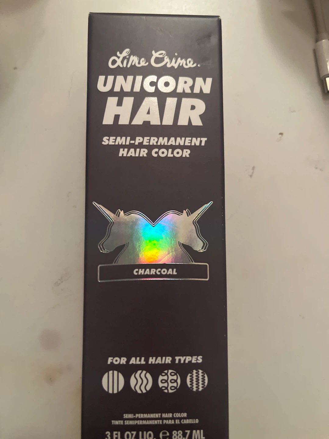 Selling a tube of Lime Crime Unicorn Hair semi-permanent hair color in the shade Charcoal! It's for all hair types and contains 3 fl oz (88.7 mL)