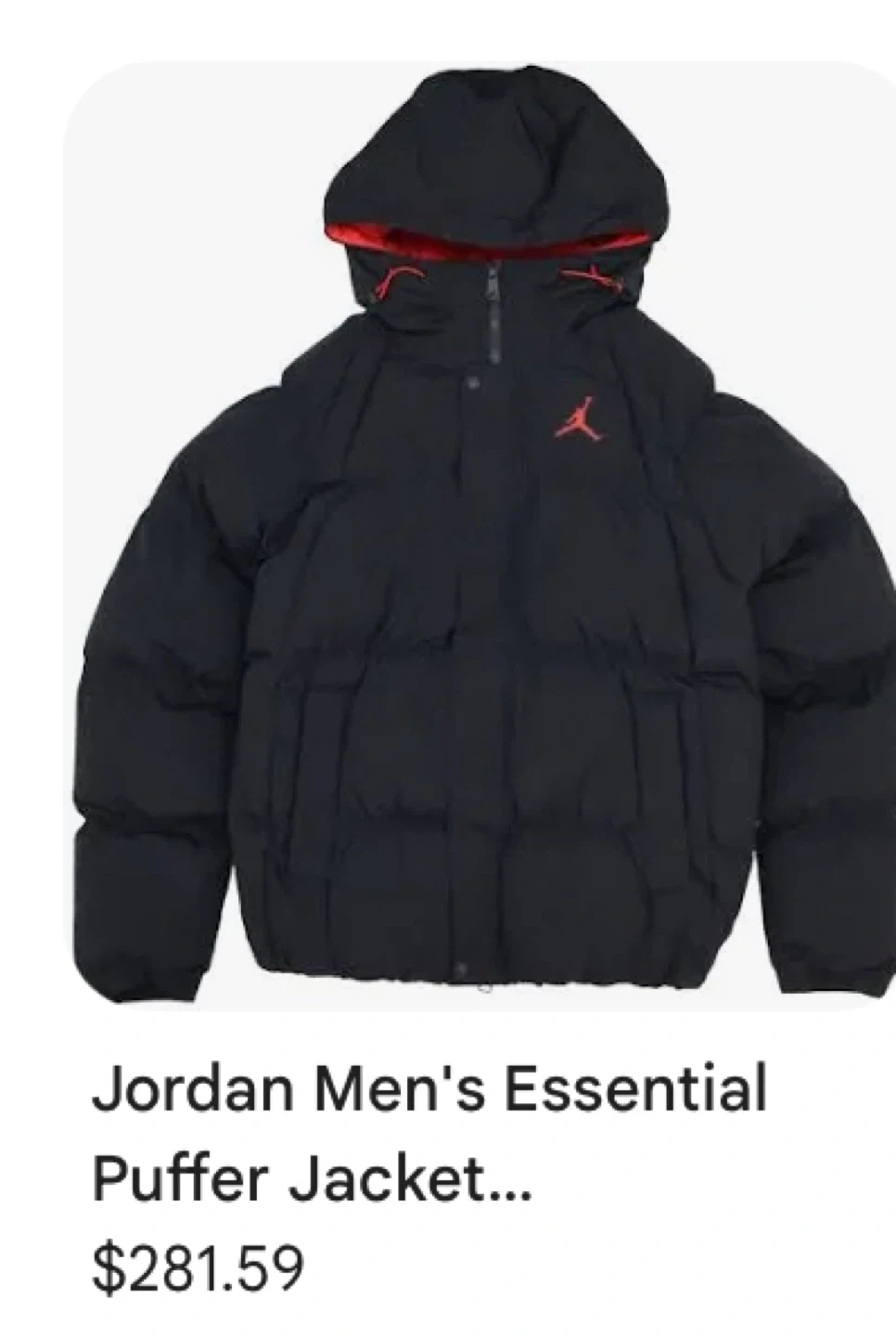 Buy & SellJordan Men's Essential Puffer JacketJordan Men's Essential Puffer Jacket$90Selling a Jordan Men's Essential Puffer Jacket. It's black with a red interior. Retails for $281.59 selling it for $175.00. Size large.BrandJordanWHERE TO MEETMontrose and CiceroView MapSELLERverifiedNabePortage Park1297 reviews1 chats·0 favorites·57 viewsSEND CHAT TO SELLERHi Nabe! I’m interested in your listing.Hi Nabe! I’m interested in your listing.Get the Karrot app to chatSign In to chat