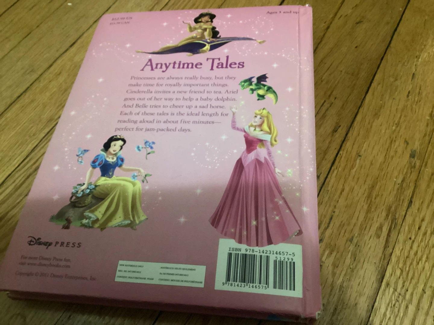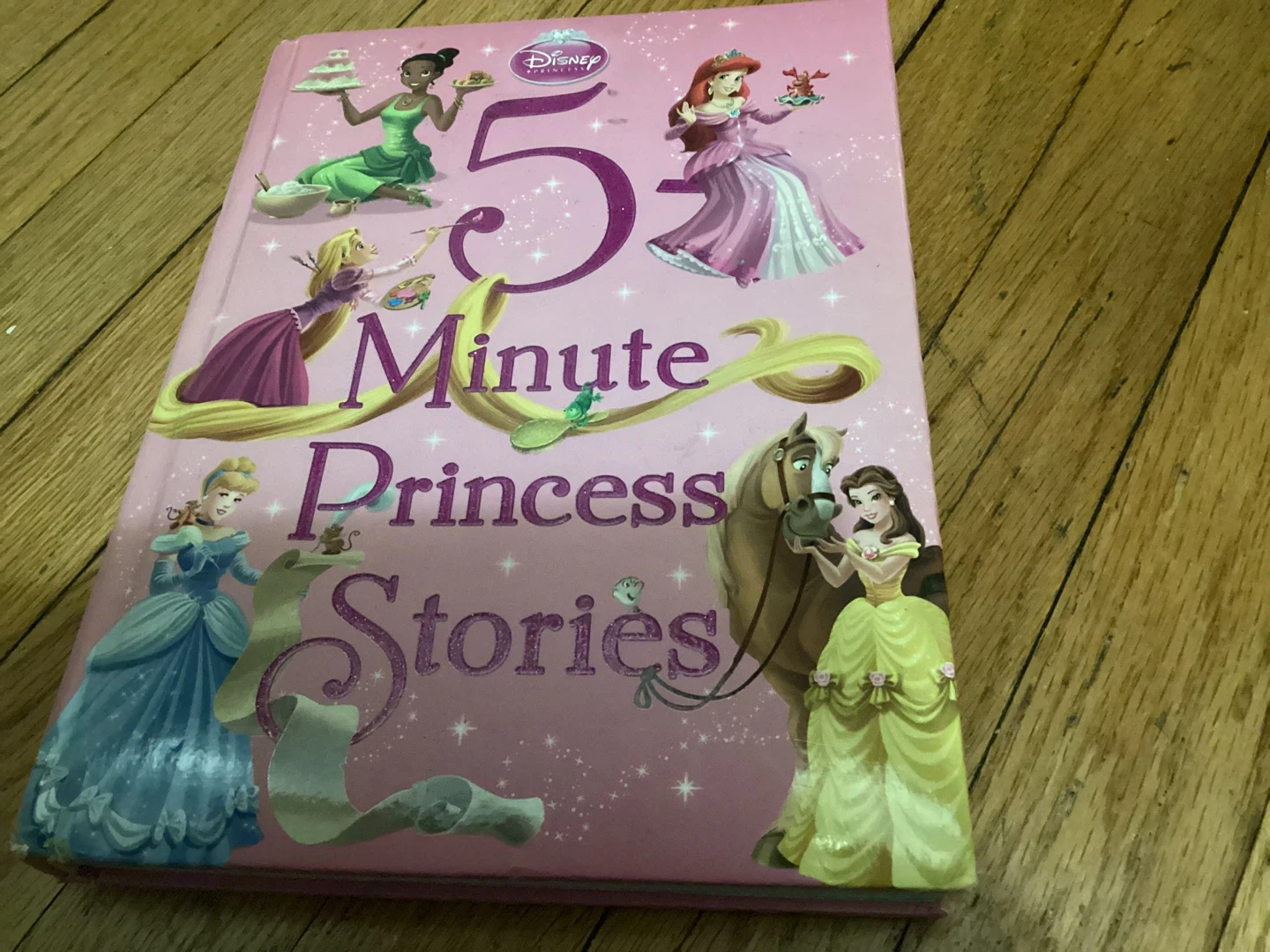 Selling a Disney "5 Minute Princess Stories" book. It's perfect for jam-packed days and ideal for reading aloud in about five minutes! It features Anytime Tales with Cinderella, Ariel, and Belle.