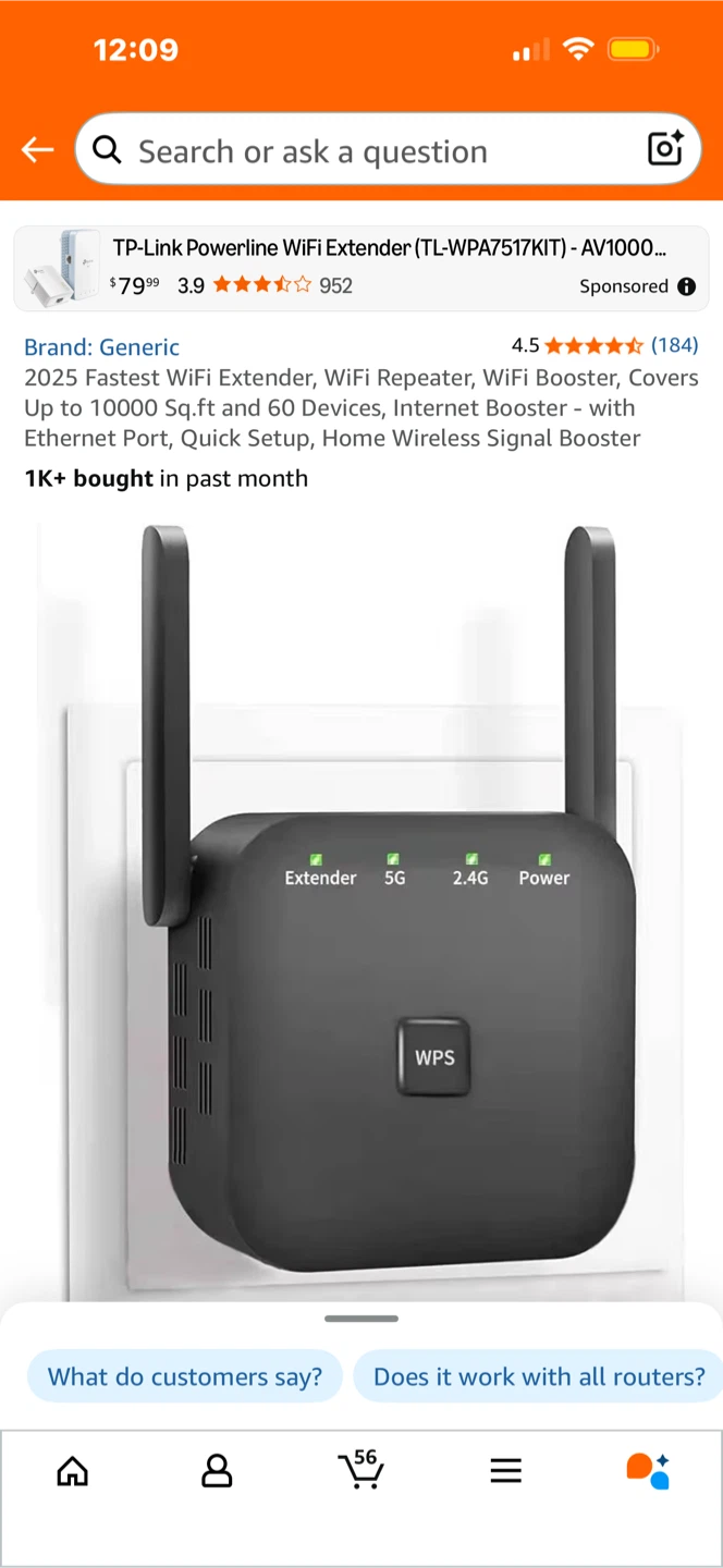 I'm selling a WiFi extender. This WiFi repeater and booster covers up to 10000 Sq.ft and 60 devices. It also includes an Ethernet port for quick setup and home wireless signal boosting. It was originally $79.99