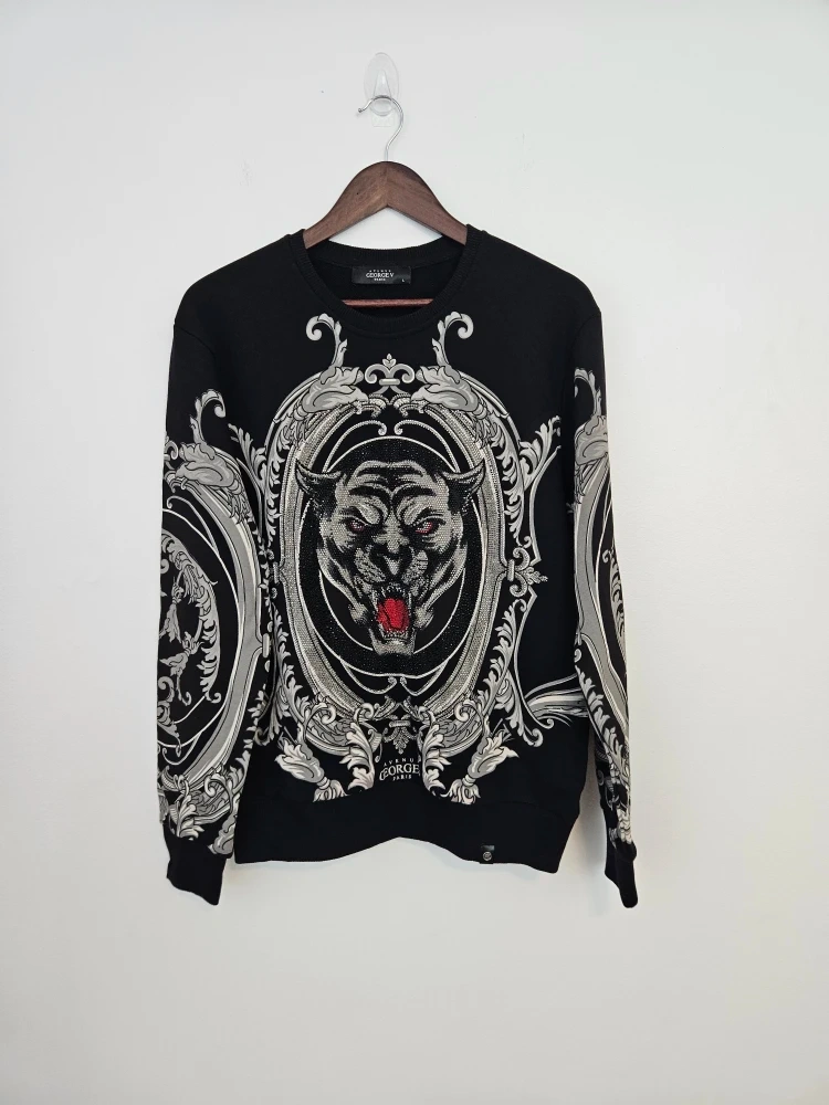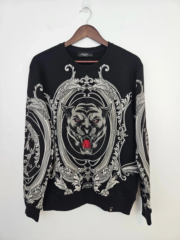 Amazing!! Beautiful rhinestone embellished black panther sweater. NWOT Avenue George V Paris Rhinestone Black Panther Sweater. Size Large