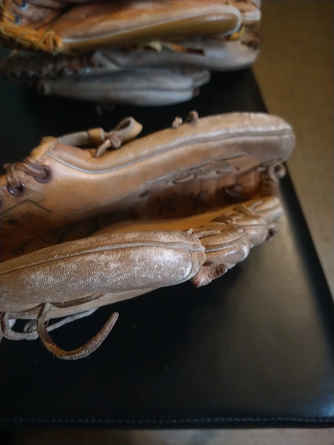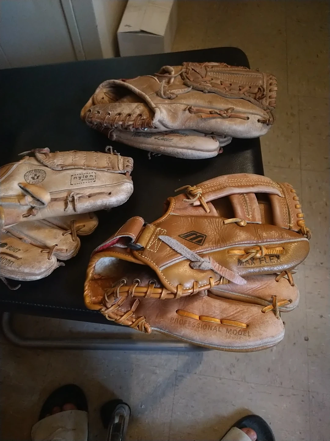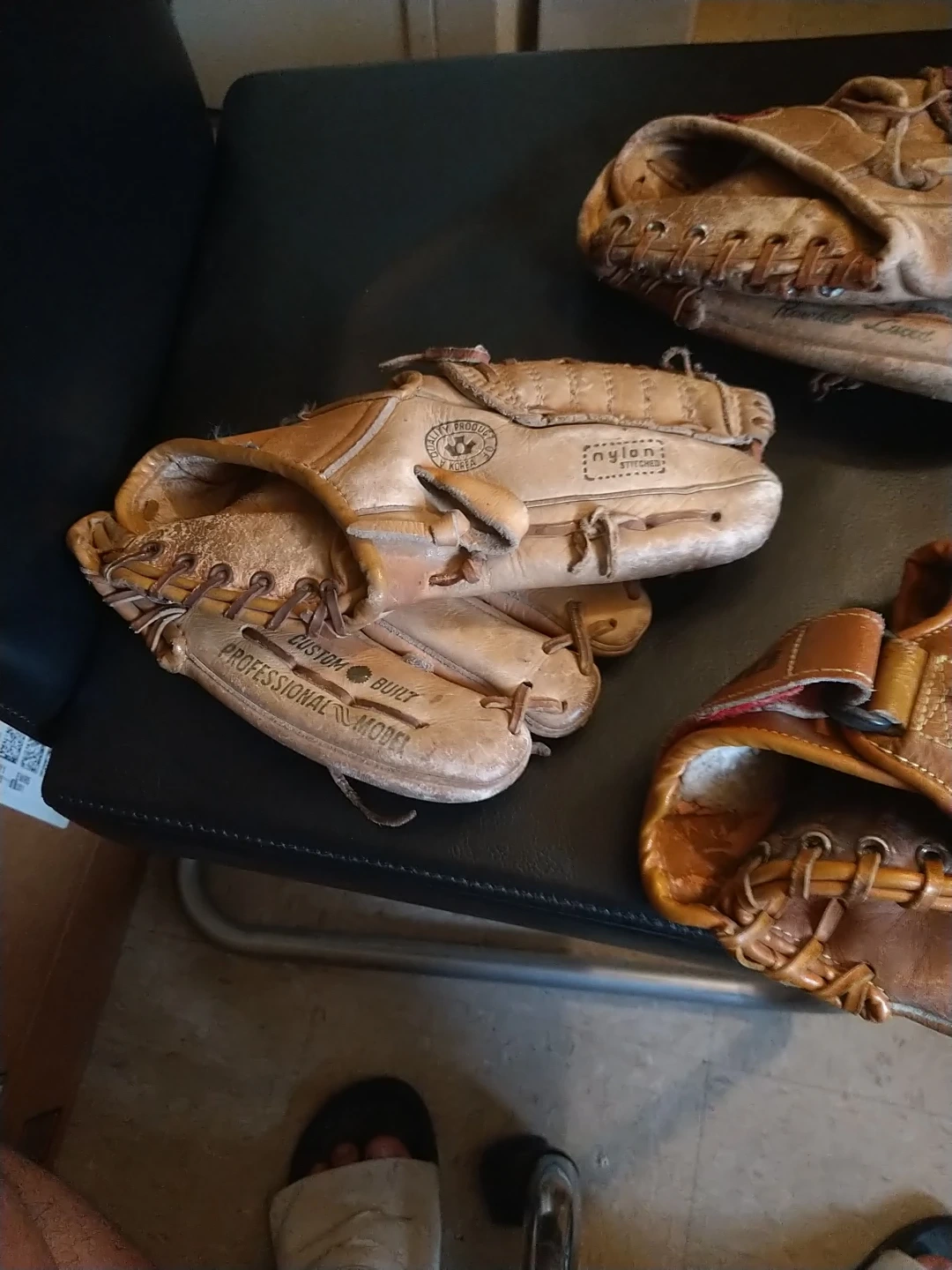 Selling a few vintage baseball gloves. They're all "Professional Model" and show some wear from use, but still have lots of character! One measures about 11 inches. They are all kinds gloves, three is the deal.