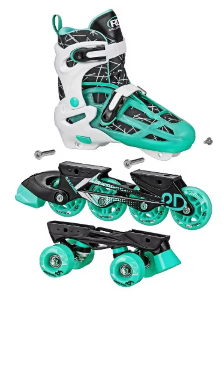 These Roller Derby girls roller skates are in great condition and ready for a new skater! They are a size 4 and feature a stylish black, white, and teal color scheme. Perfect for learning or just having fun at the rink! E 3 pc $50