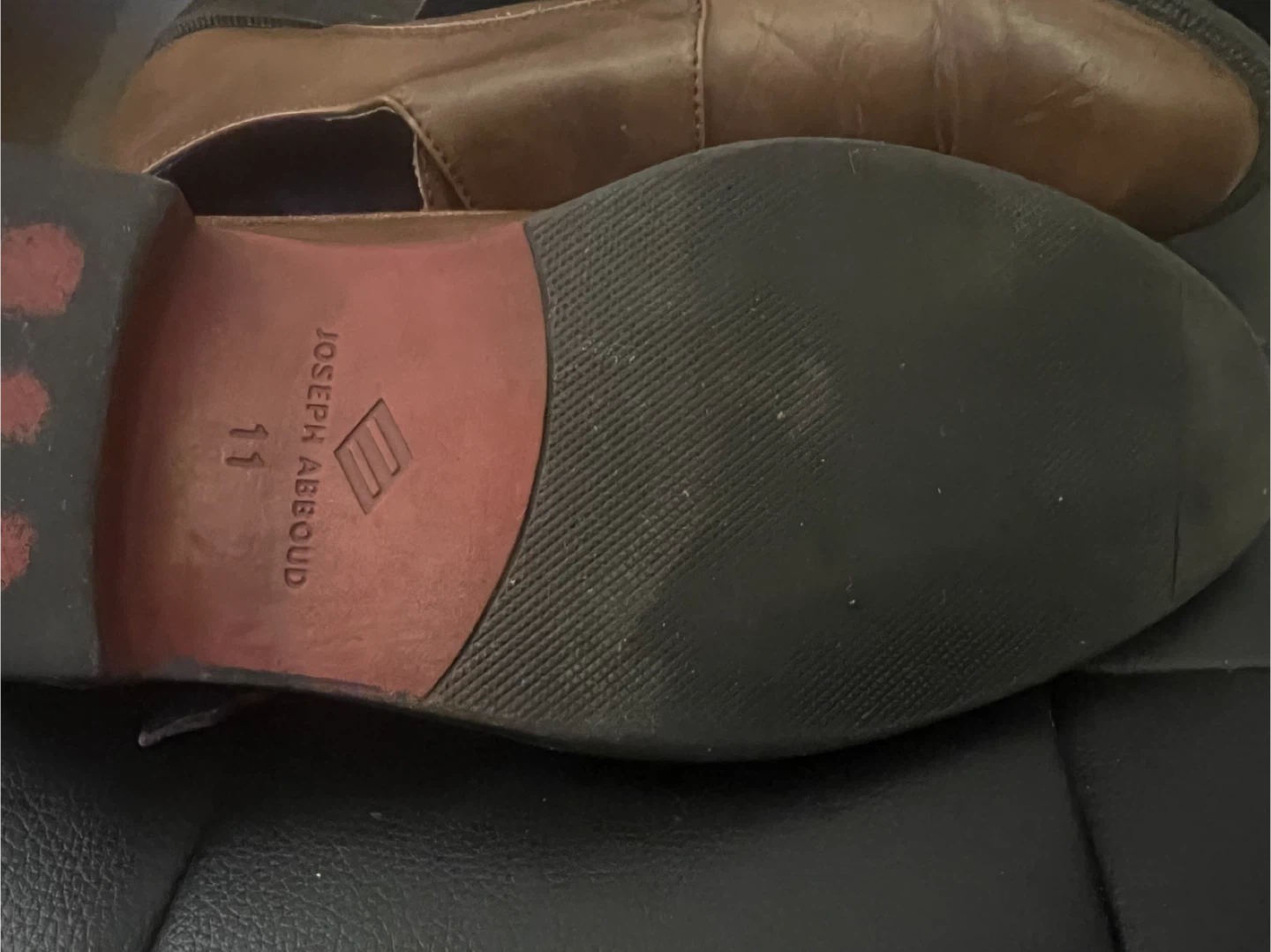 Selling a pair of Joseph Abboud doublemonk strap dress shoes. They are a size 11 and made of brown leather. They show some signs of wear but are still in good condition!