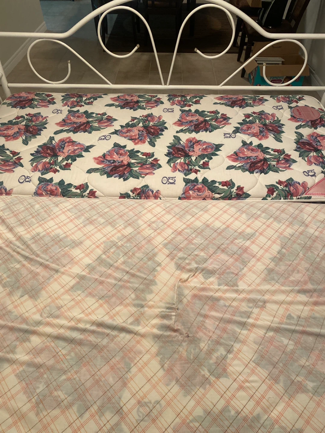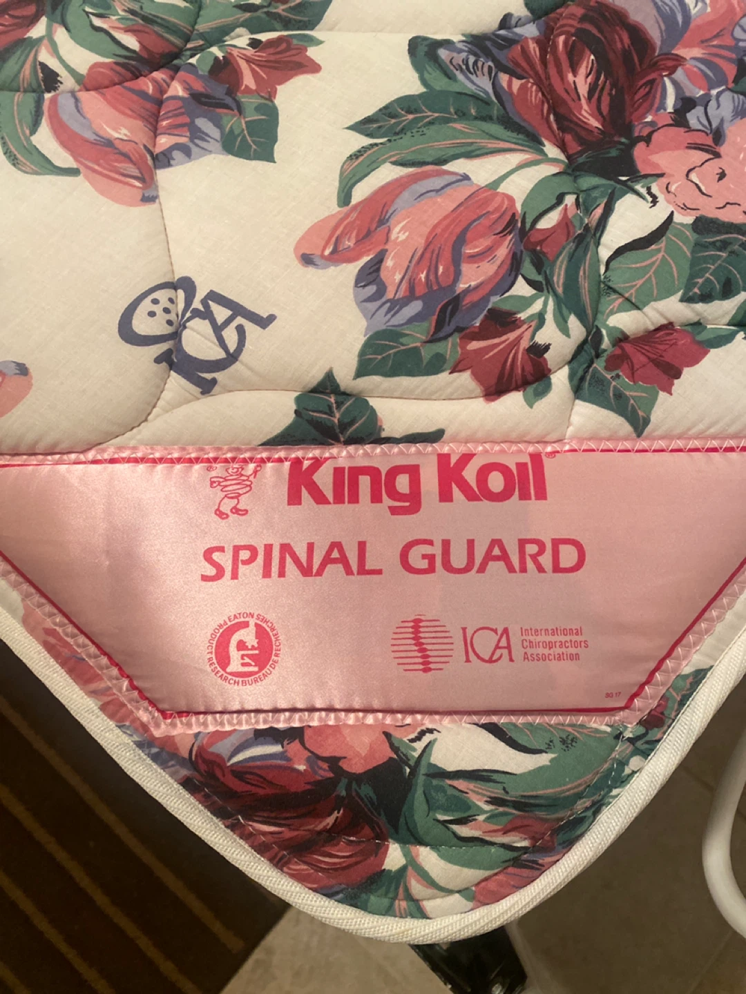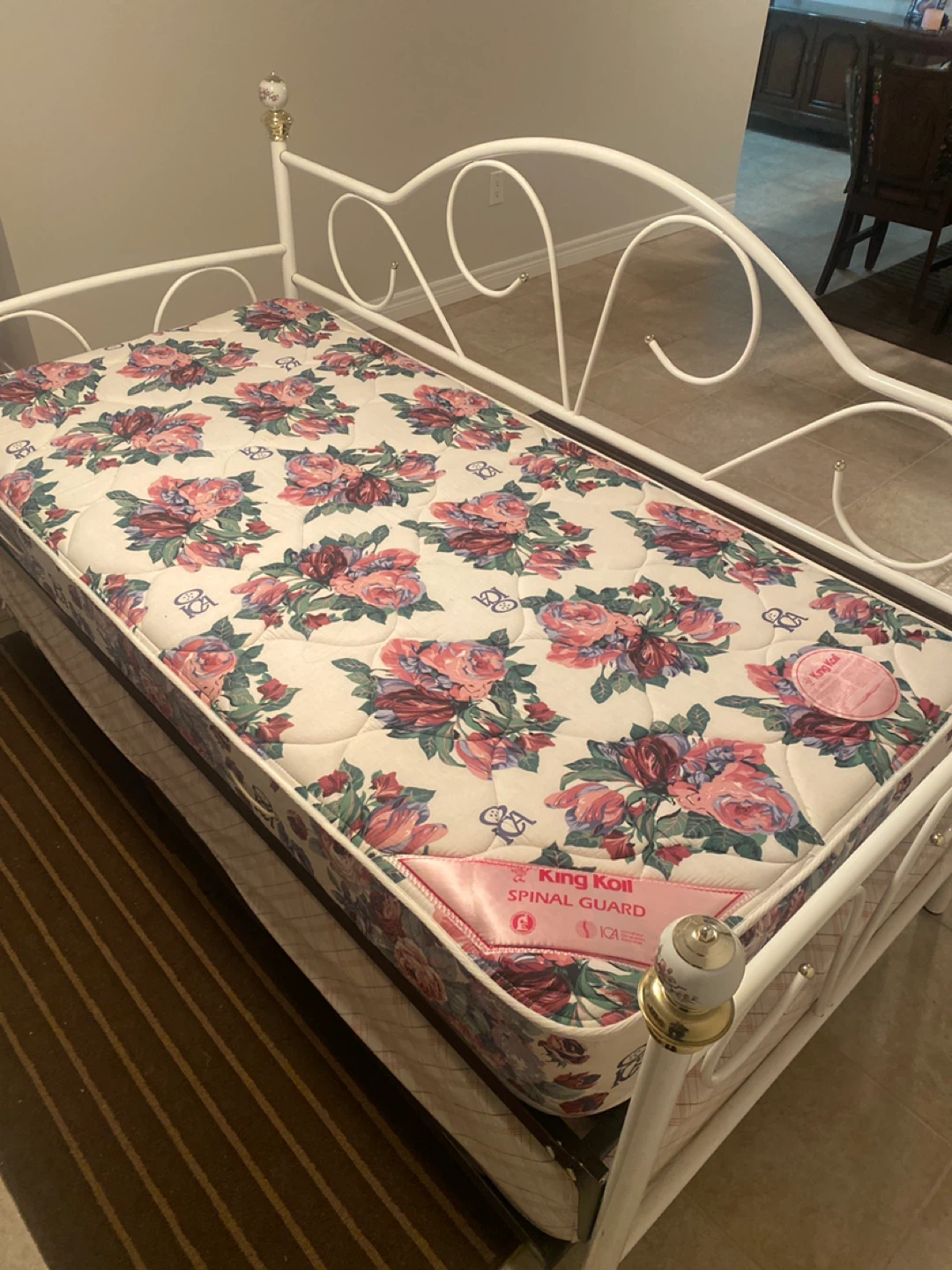 Selling a King Koil day bed with Spinal Guard mattresses. It has a floral pattern It opens up into a king size bed or can be used as two separate beds.