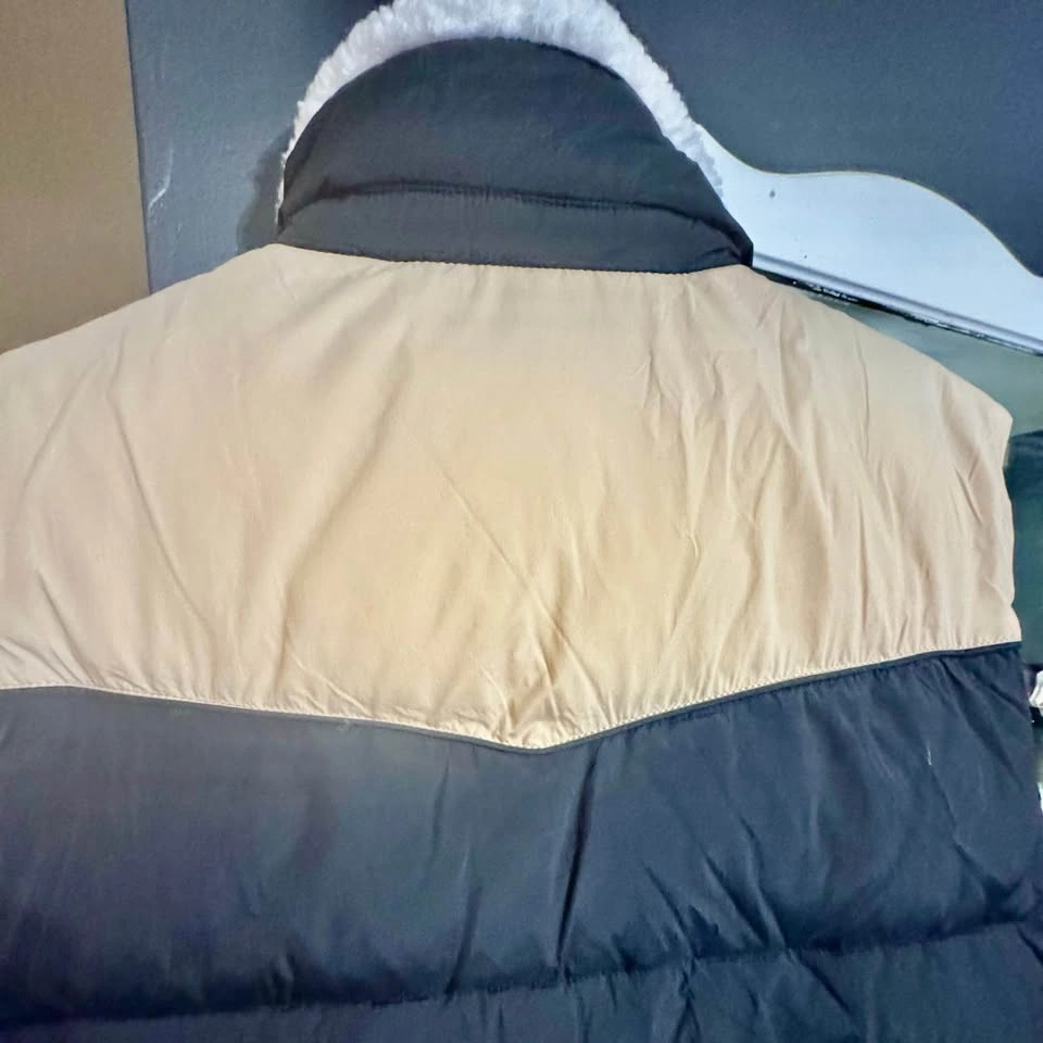 Closure: The vest uses both a center front zipper closure and a snap-button placket overlay.