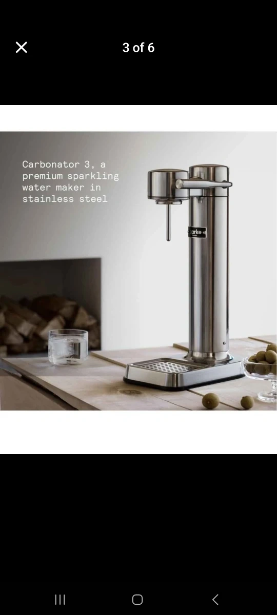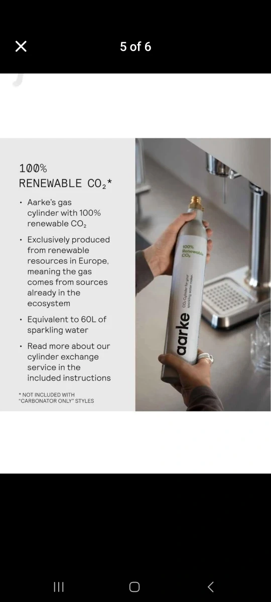 Get sparkling water at home with the Aarke Carbonator 3! This premium water maker features a stainless steel design and a precision nozzle. It's compatible with standard CO2 cylinders and can carbonate up to 60L per cylinder. Included in the box are the Carbonator 3, a BPA-free PET water bottle