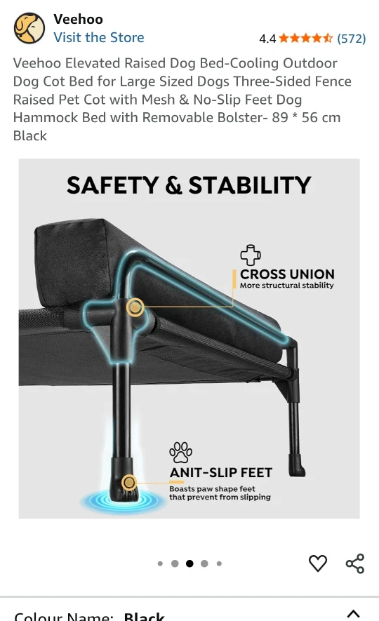 Veehoo Elevated Dog Bed - 89 x 56 cm - Black