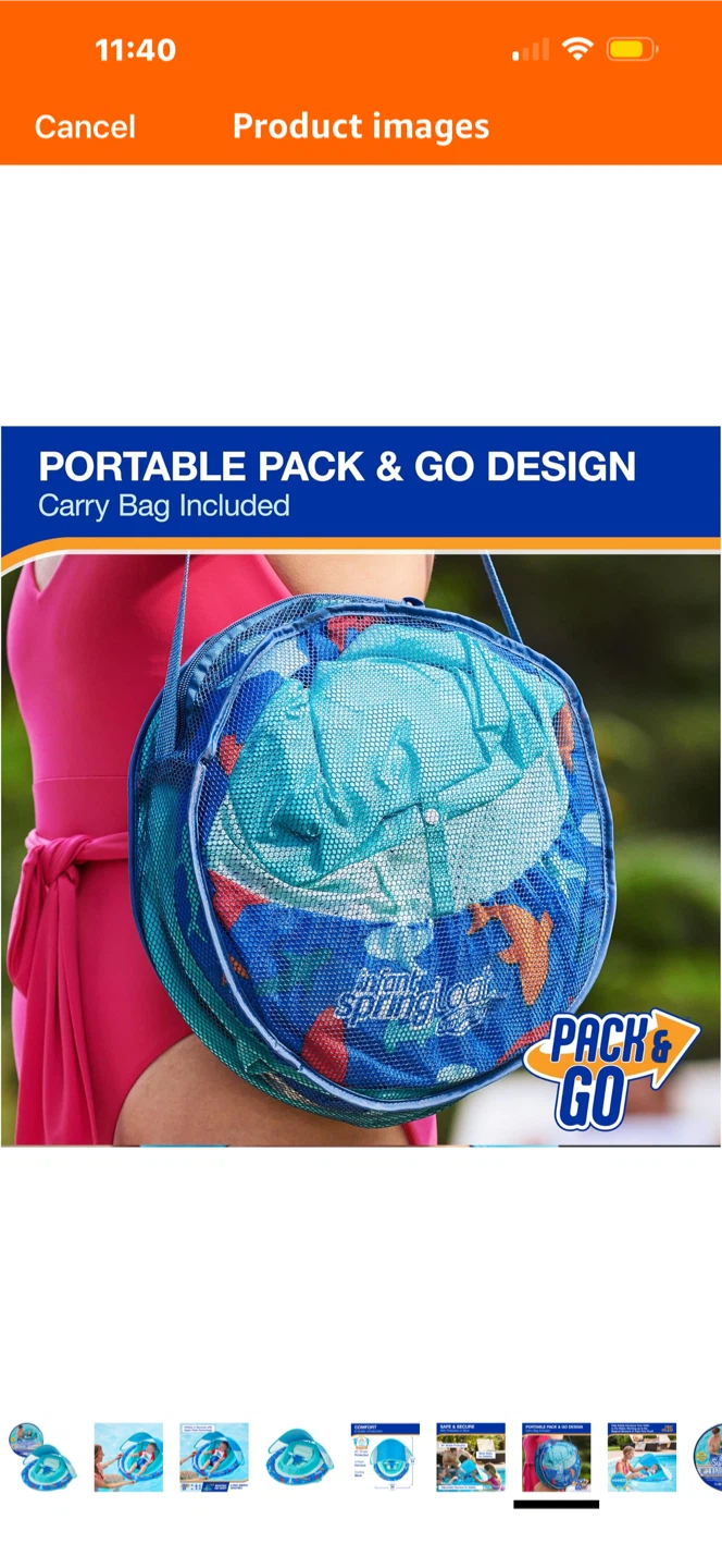 SwimWays Infant Spring Float with Canopy in the Shark design! It's a baby pool float with a canopy and UPF protection. Great for swimming pool accessories for kids aged 3-9 months. Features include: