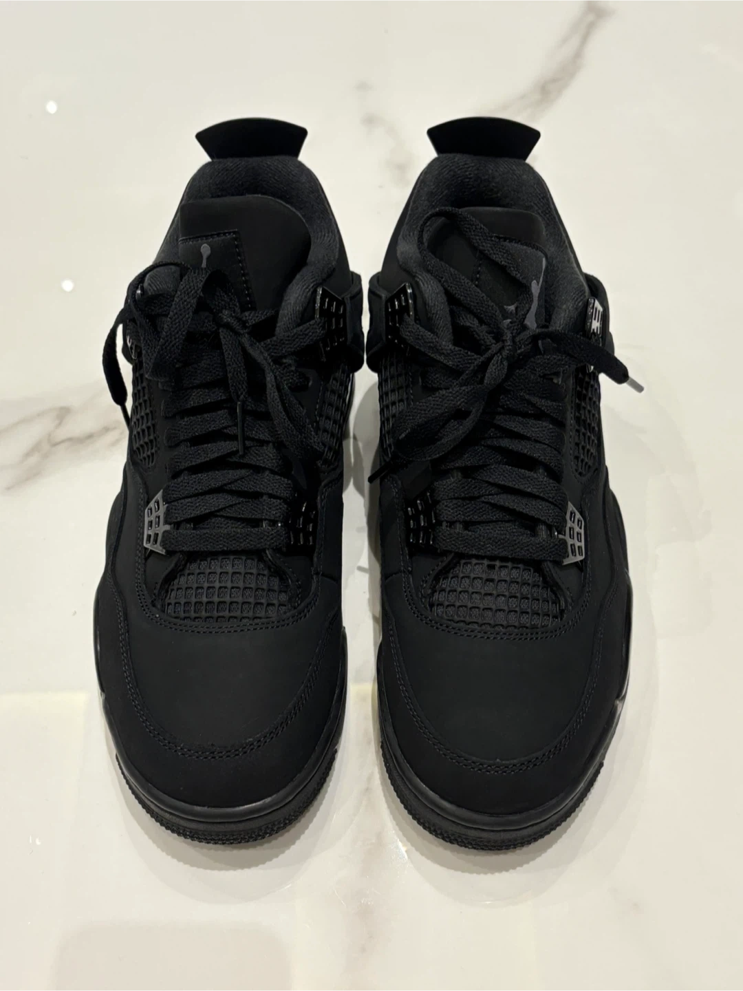 Selling a pair of 2025 Nike Air Jordan 4 Retro size US 9 in the Black Cat colourway! These shoes are in great condition and come with the original box. They feature the classic Air Jordan 4 design with a sleek, all-black look. Perfect for any sneakerhead or Jordan fan! Hasn’t been released since 2020 and a new batch has just been released in 2025, it probably won’t be another batch released until 2030, so it will be worth a lot! Brand new, the pictures are from my first pair that I will be wearing myself and I have a second brand new pair never worn or taken out of the box, and still in the original paper wrapped! I also have receipts and proof of purchase!