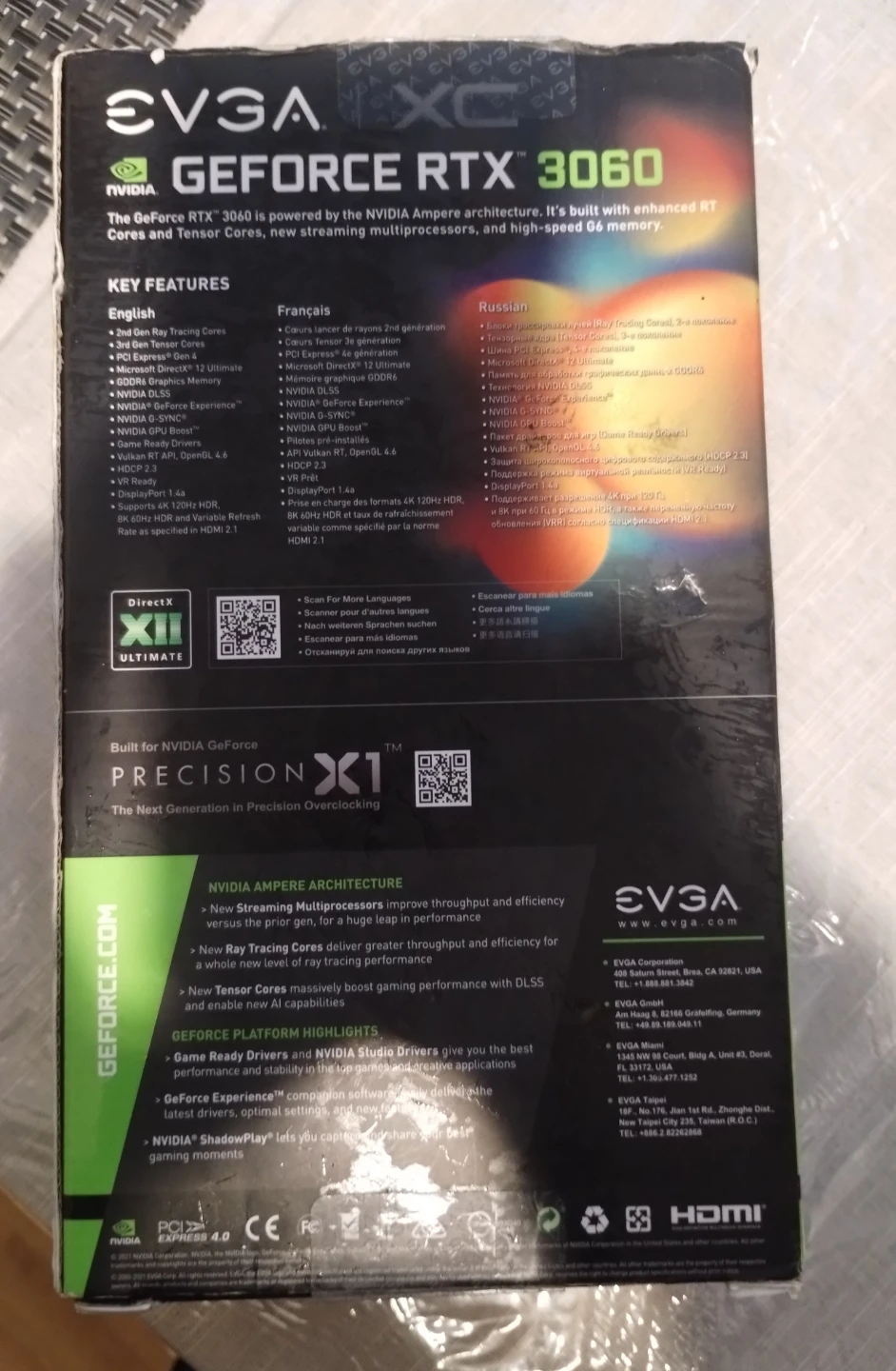 Selling an EVGA GeForce RTX 3060 XC graphics card with 12GB of GDDR6 memory. It's in great shape and comes with the original box. This card is powered by the NVIDIA Ampere architecture and features 2nd Gen Ray Tracing Cores and 3rd Gen Tensor Cores. It supports PCI Express Gen 4 and DisplayPort 1.4a, as well as HDMI 2.1. Perfect for gaming or creative studio drivers!