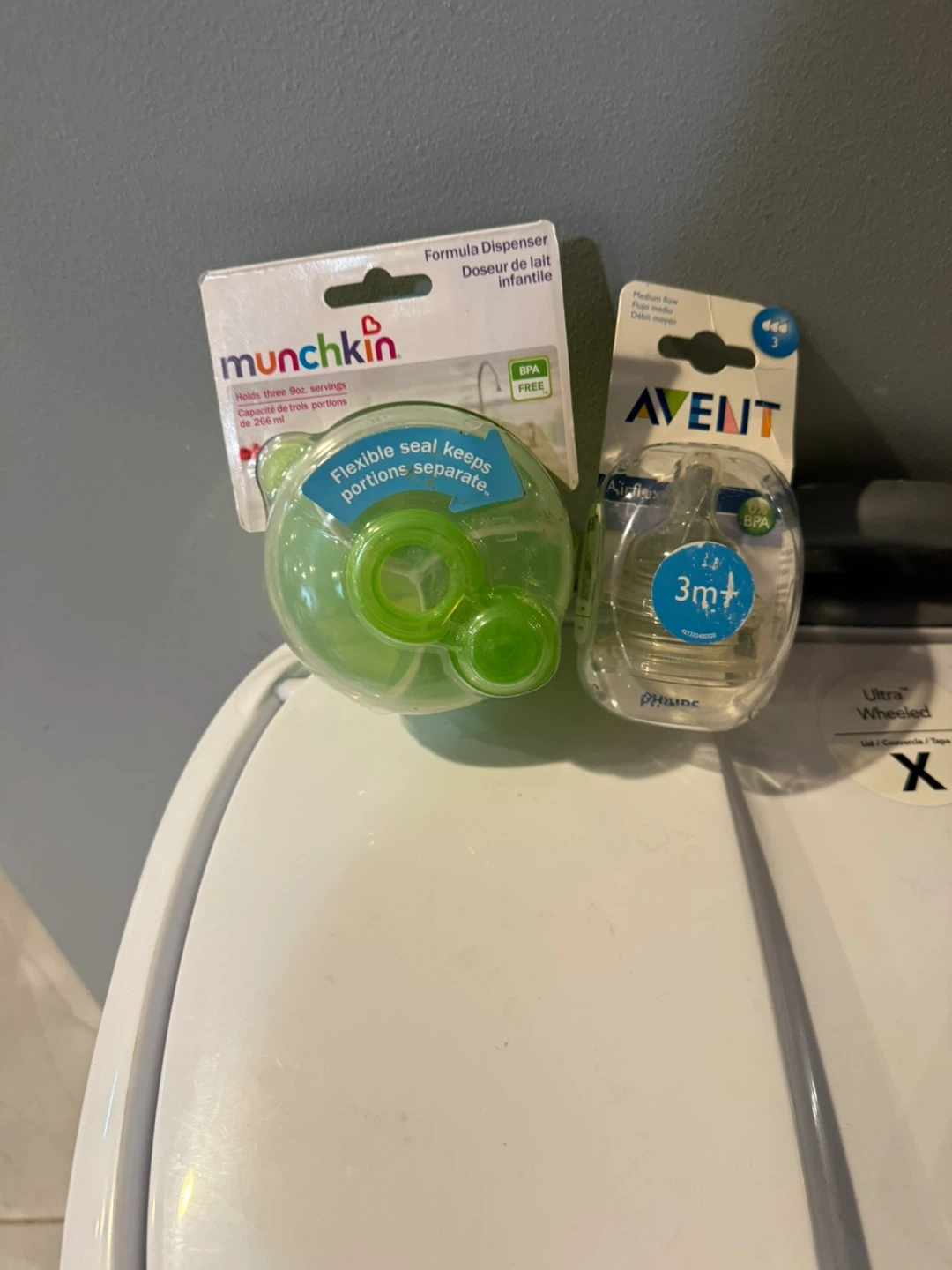 Selling a Munchkin formula dispenser and an Avent nipple for babies 3 months and older. Both are BPA free and in new condition!