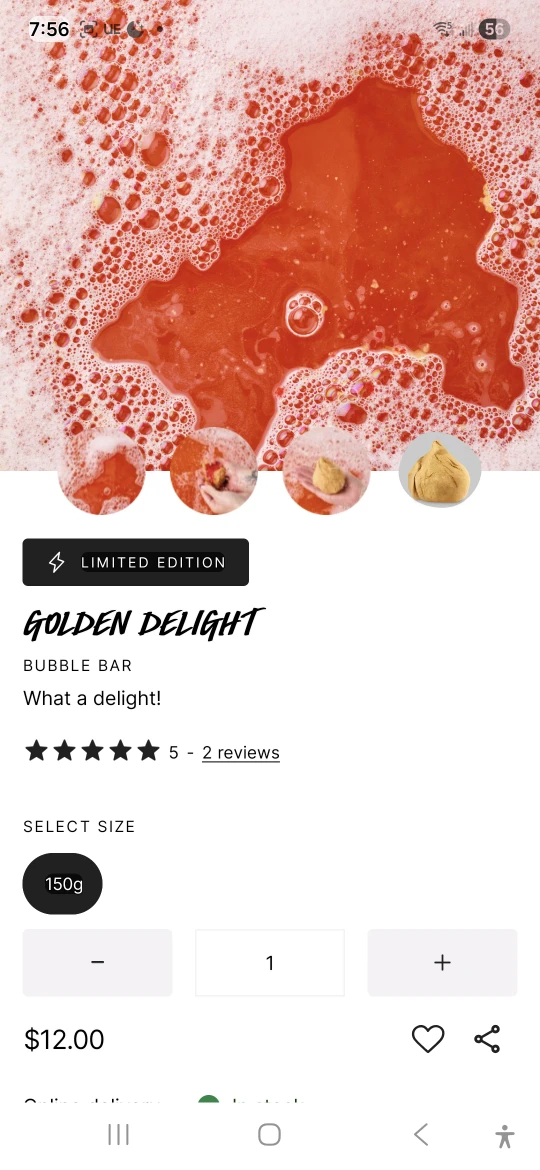 I'm selling a Lush Golden Delight Bubble Bar! It's a limited edition item with a syrupy-sweet bubble bar that gives you a sugar rush.