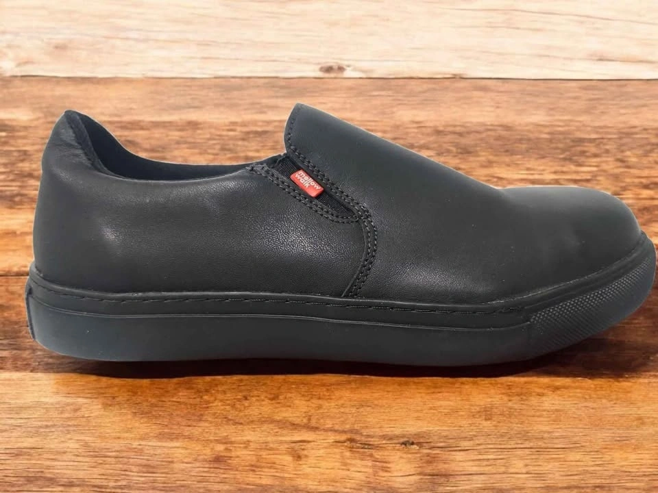 For work environments where a safety shoe is preferred over a boot, these Mellow Walk slip-ons fit the bill. Retail $145 and 13% tax $165. Designed for light industrial facilities, they feature comfort-built midsoles and insoles and dual-density outsoles which are slip resistant as will as resistant to acids and oils. Steel toes and composite plates meet CSA Grade 1 compliance requirements. Made in Canada. LEATHER UPPER SYNTHETIC COMFORT LINING REMOVABLE DREAMFIT COMFORT INSOLE Antibacterial, breathable, moisture-wicking ANTI-FATIGUE MEMORY FOAM CUSHIONED MIDSOLE SAFETY FIRST CSA Grade 1 steel toe, composite plate. Puncture resistant NON-MARKING, SLIP-RESISTANT, ACID/OIL RESISTANT OUTSOLE SLIP-ON STYLE