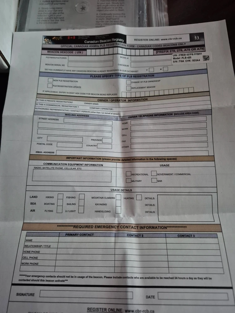 Selling an ACR ResQLink View personal locator beacon survival kit.