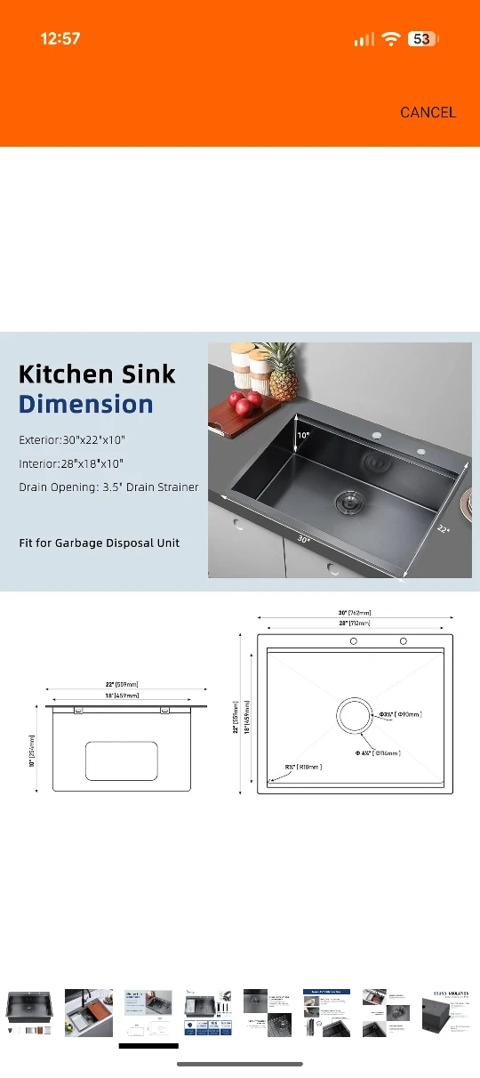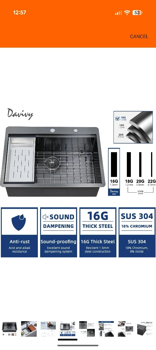 Davivy Kitchen Sink - 30 x 22 x 10 inches