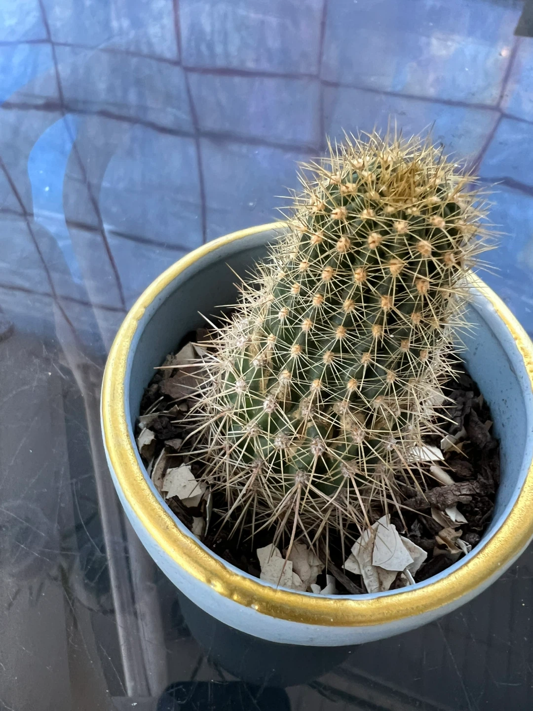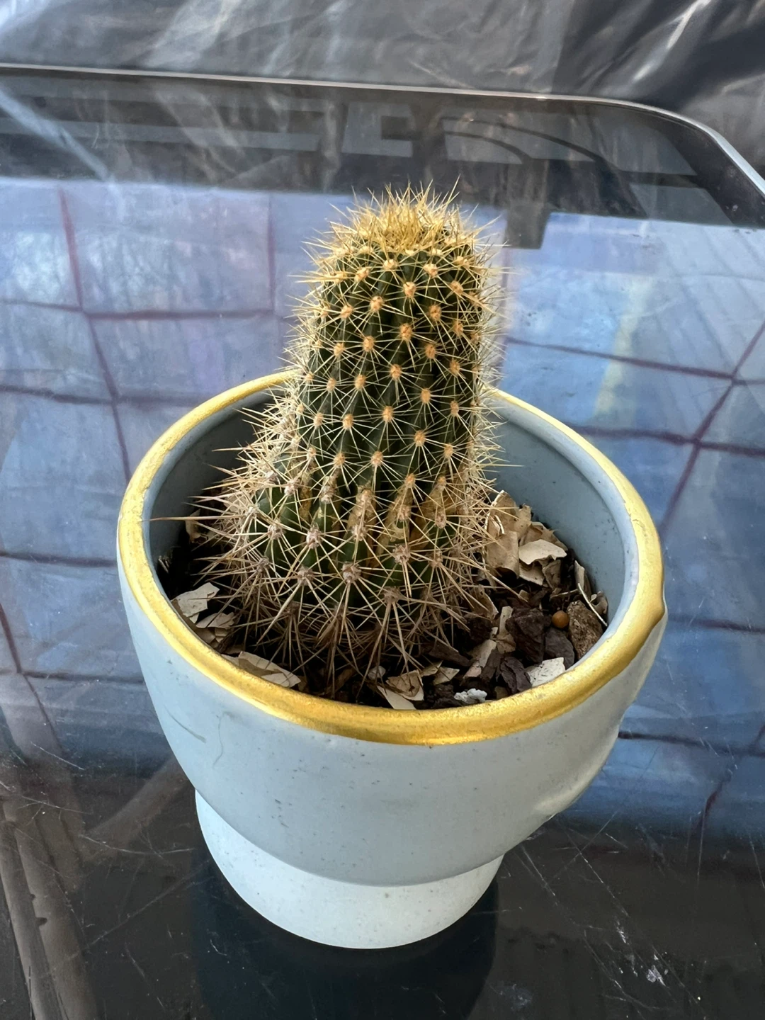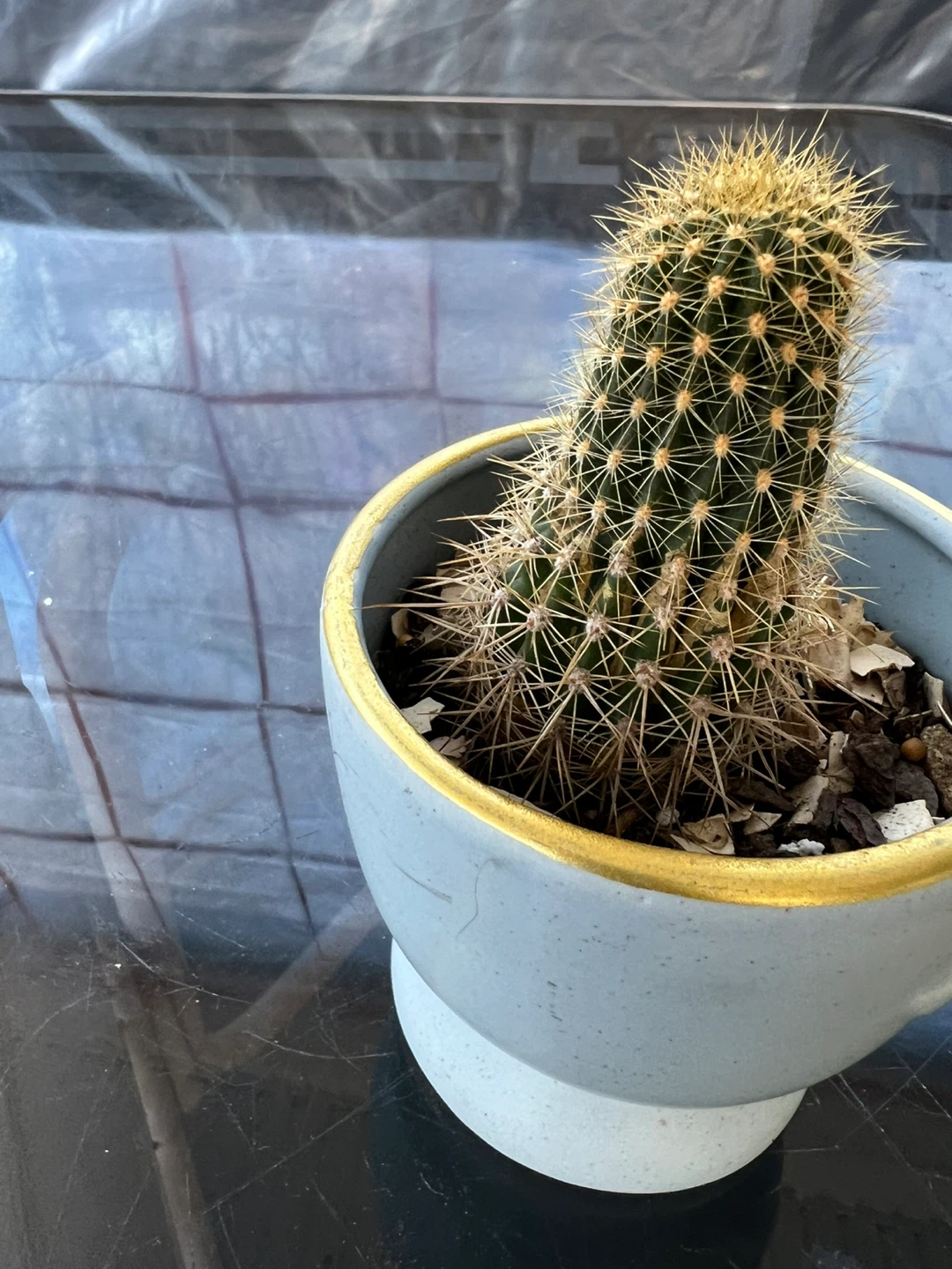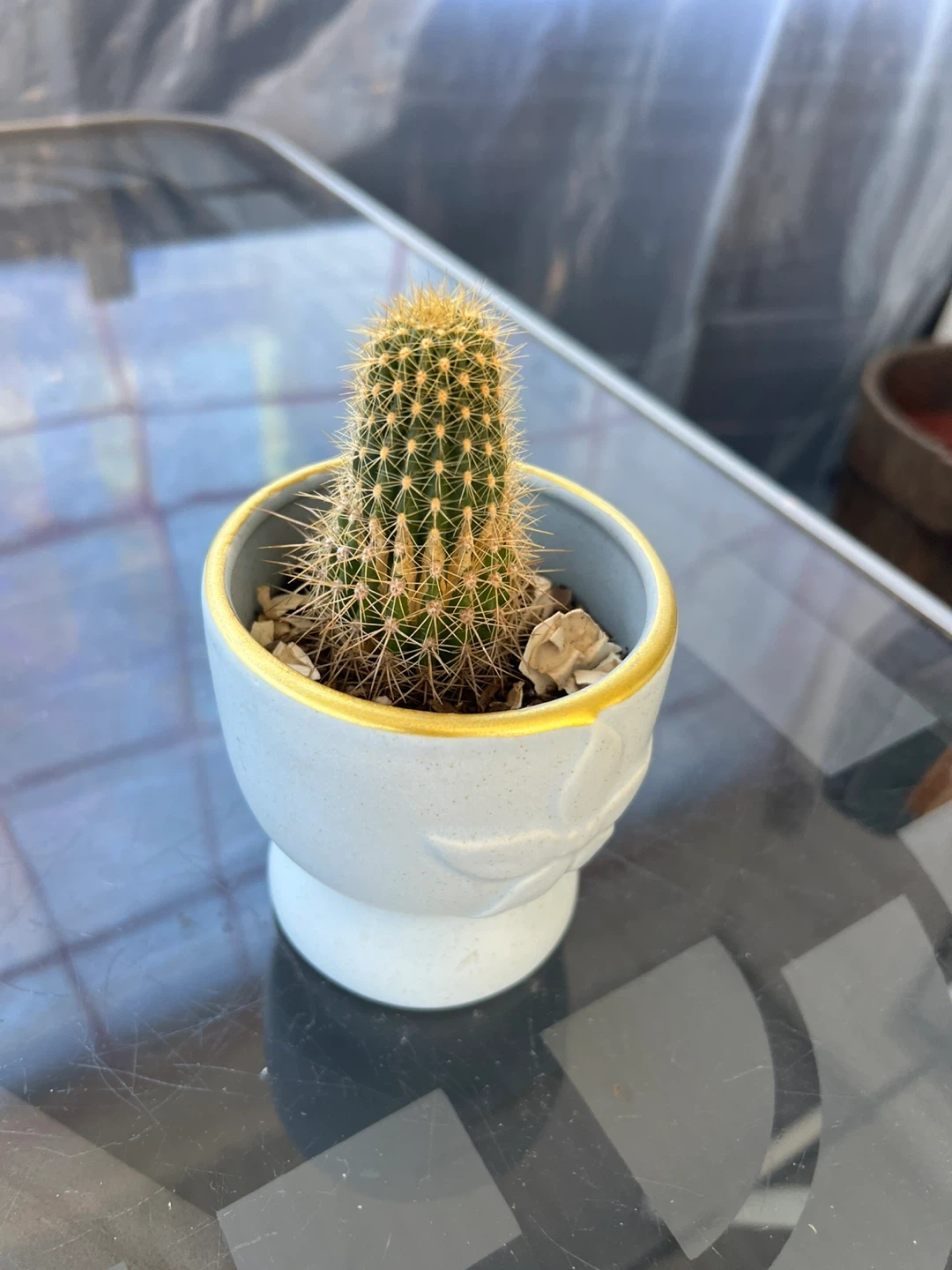 A small cactus in a decorative pot. It's perfect for adding a touch of greenery to your home or office space.pick up in bay ridge 11220 and please check my other listing.
