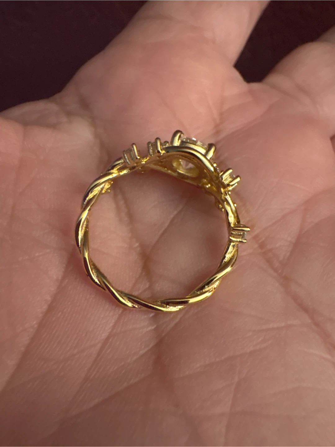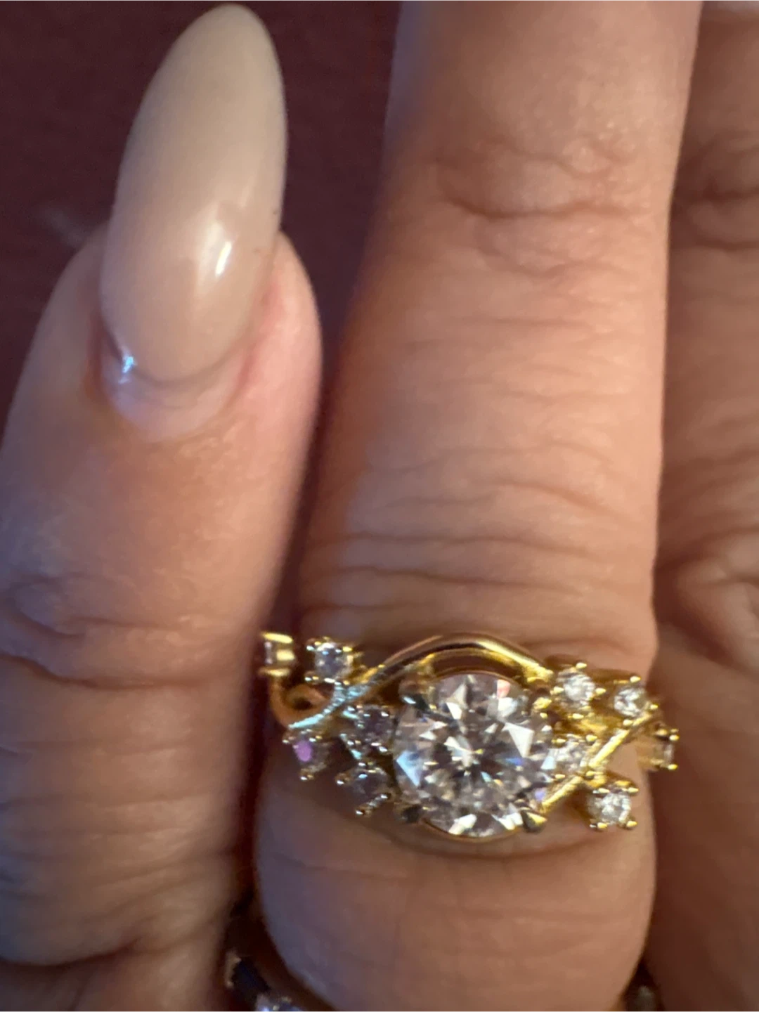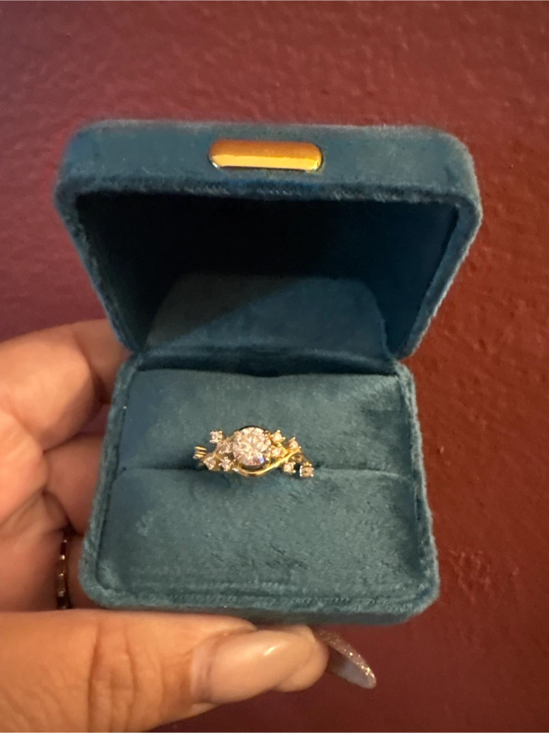 Selling a beautiful gold ring with diamond accents. It comes in a velvet box, perfect for gifting or safekeeping. The ring is in excellent condition and ready to be worn!