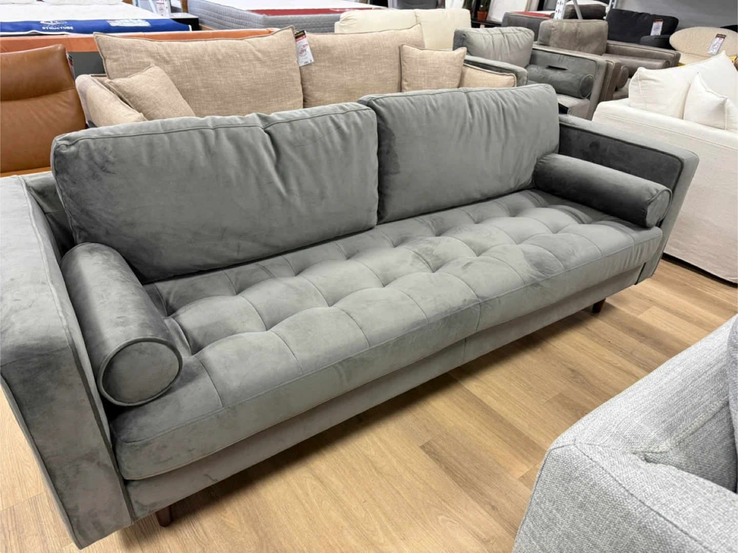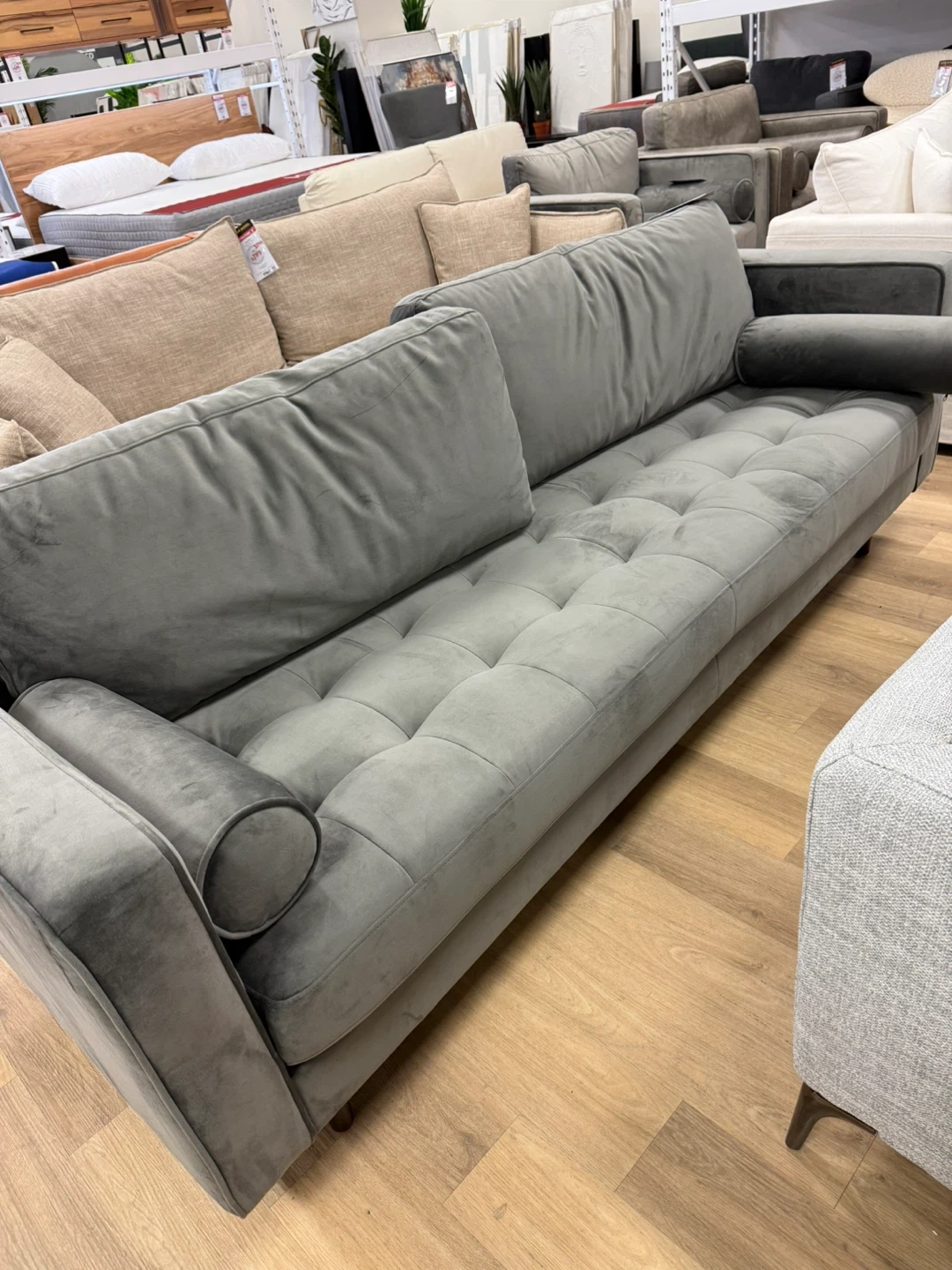 Selling my “KINSEY” gorgeous comfy Velvet Grey/Sage Green 3 Seater Sofa! (the hue changes in warm lighting)