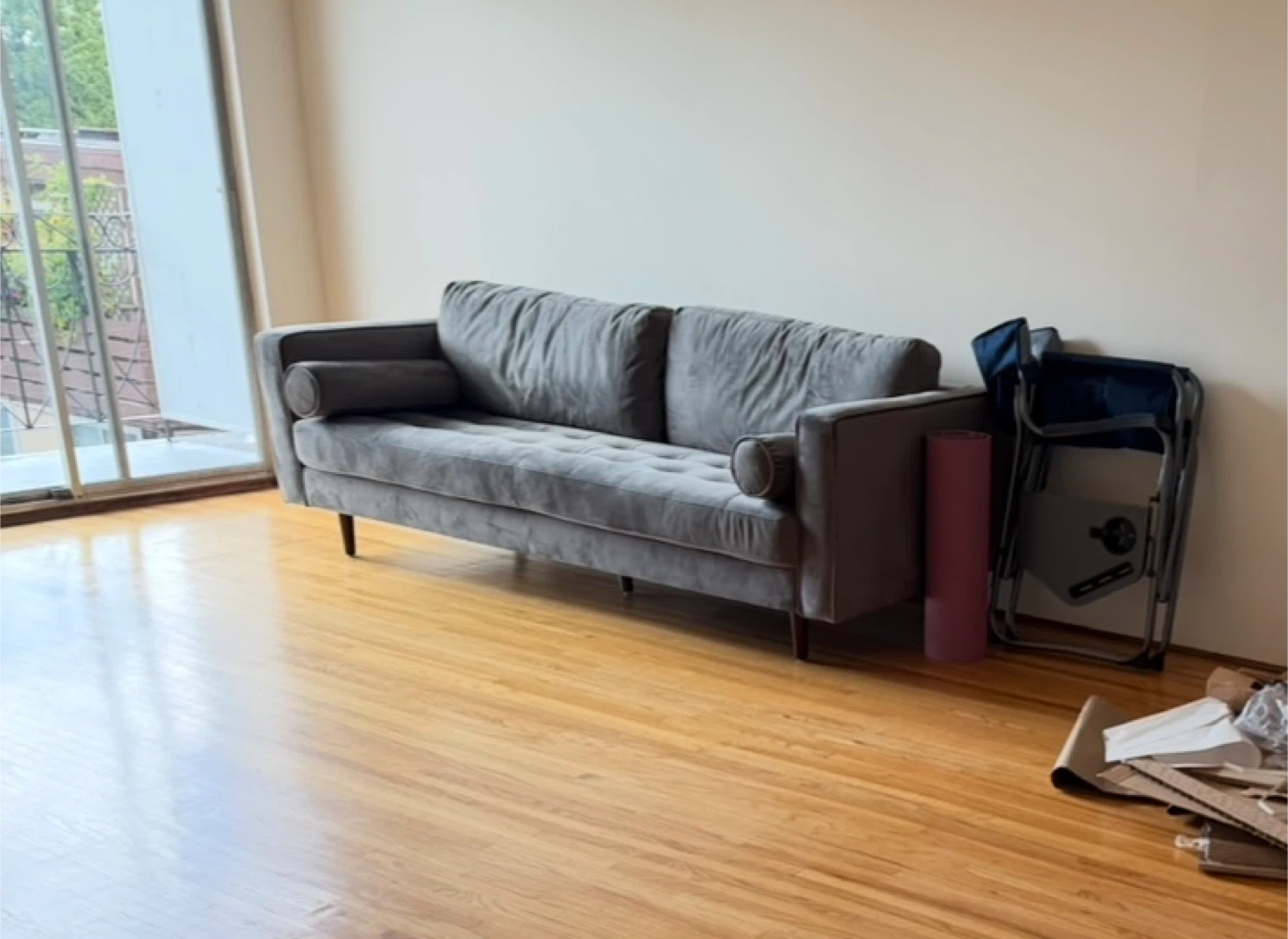 Must Sell 2 Months New, Stylish Velvet Grey/Sage Green Sofa