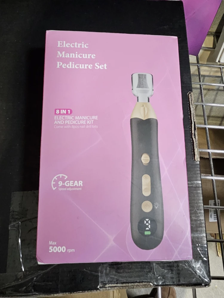 Selling an electric manicure and pedicure set. It's an 8-in-1 kit that comes with 8 nail drill bits. It features a 9-gear speed adjustment and a max speed of 5000 rpm. The box is included!
